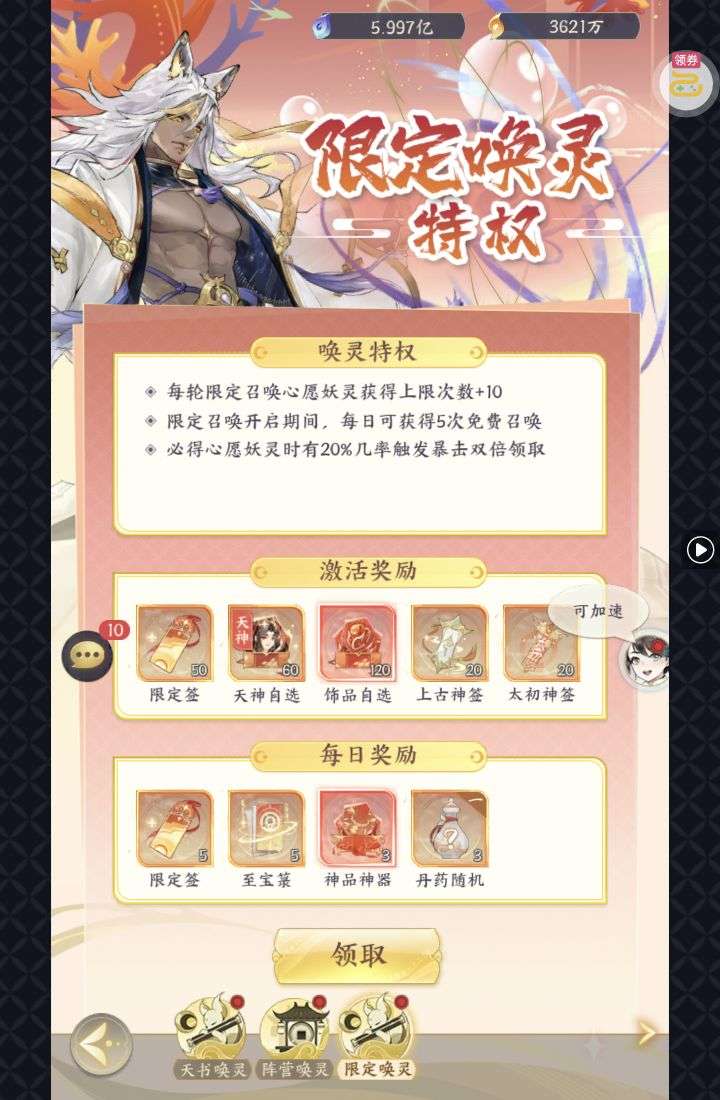 一堆圣晶石6小时*1、募魂令*10、暗淡原石*40(每个账号限领一次)