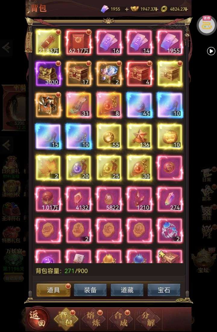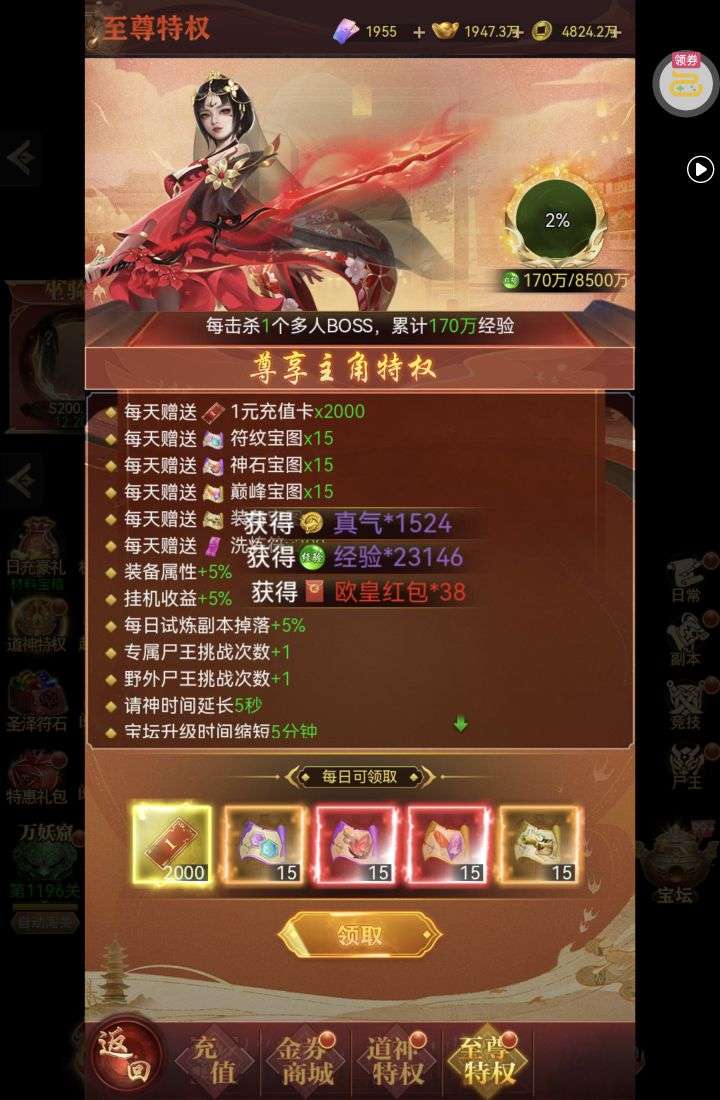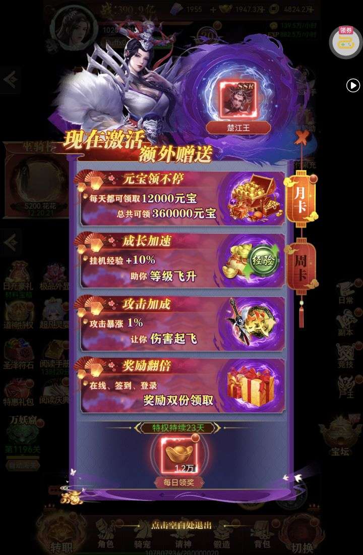 金条*588,白银占卜币*12,鬼神经验*250000(每个账号限领一次)