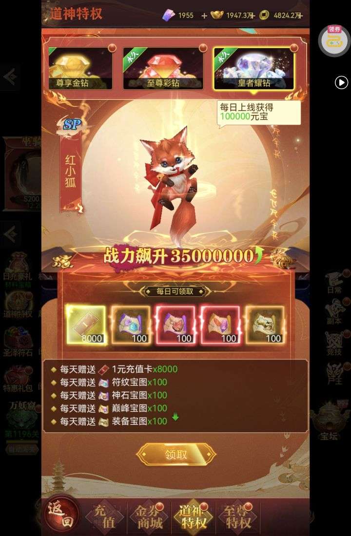强化药剂*200、钻石招募币*20、金币*50W(每个账号限领一次)