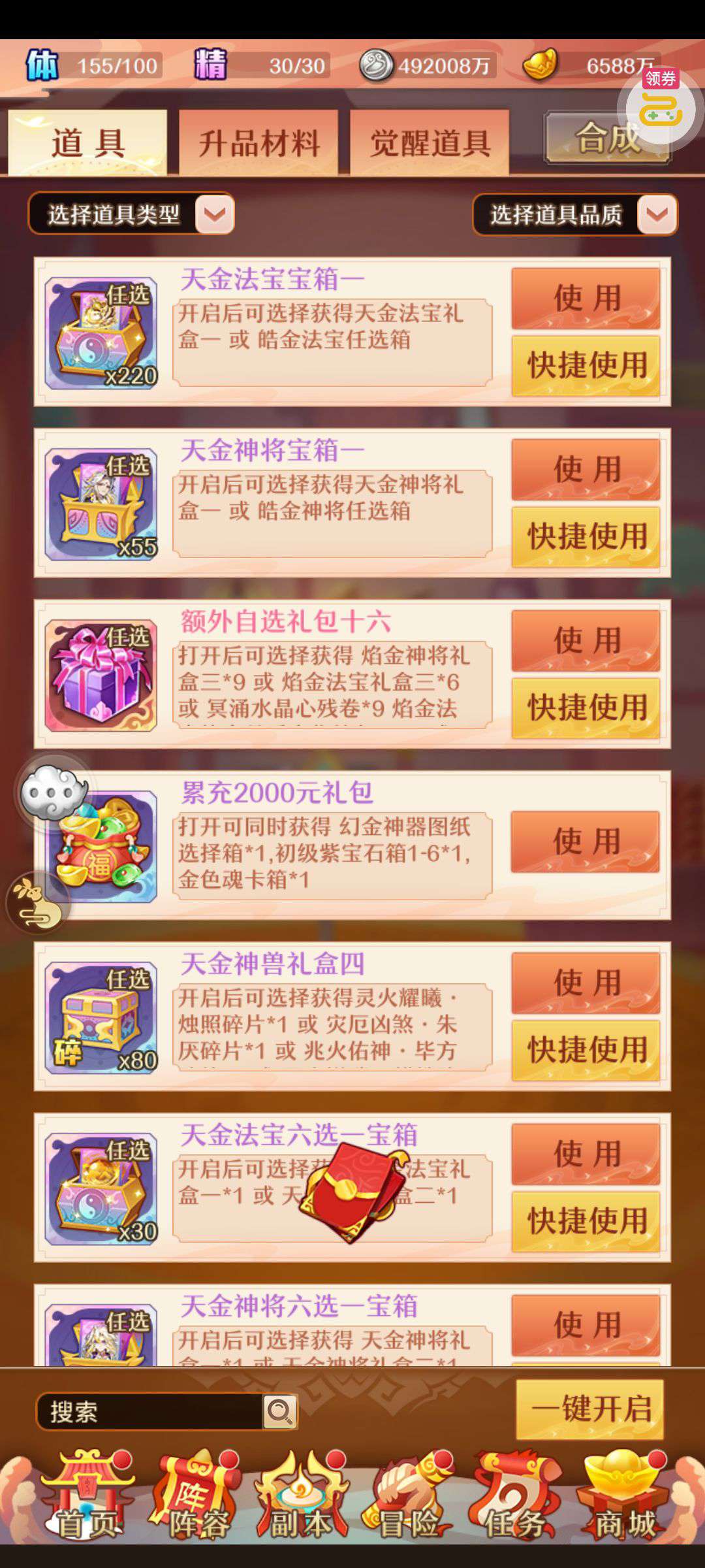 强化药剂*200、钻石招募币*20、金币*50W(每个账号限领一次)