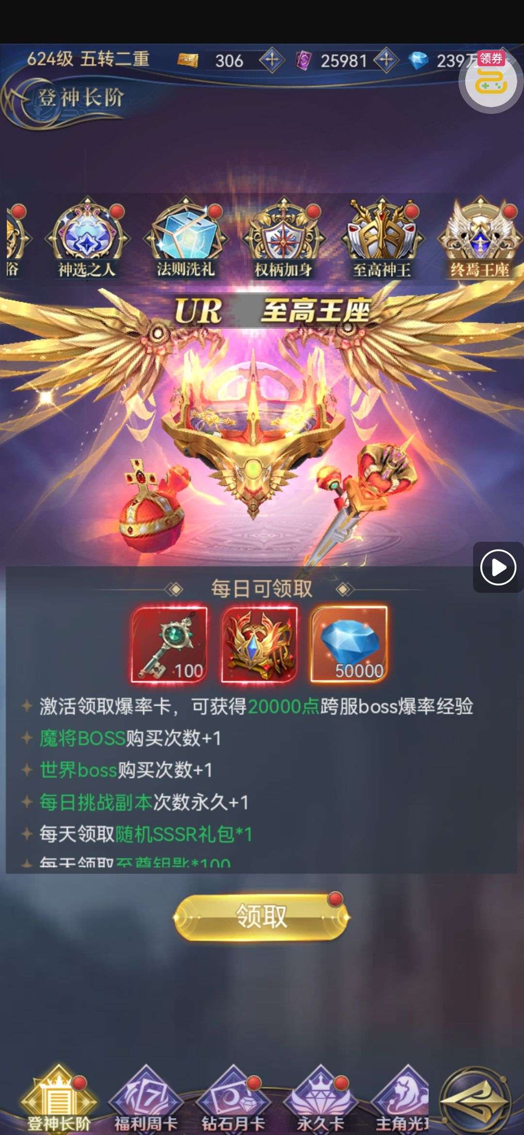 强化药剂*200、钻石招募币*20、金币*50W(每个账号限领一次)