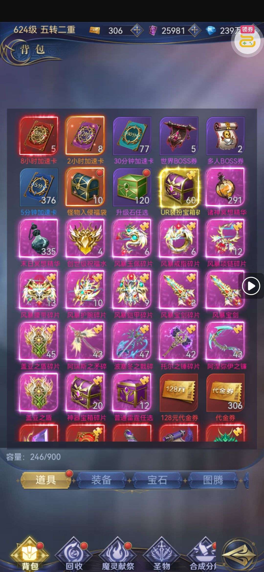 金条*588,白银占卜币*12,鬼神经验*250000(每个账号限领一次)