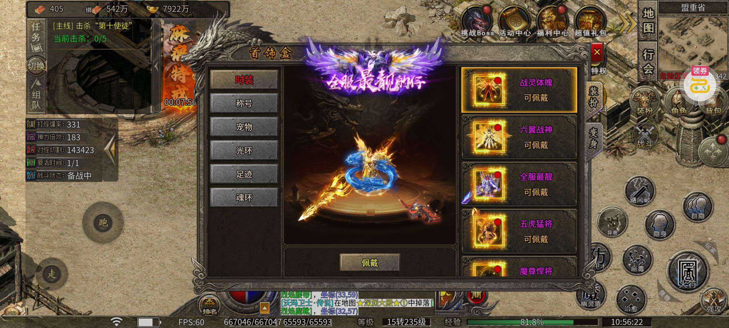 《雄霸天地》手游公益服散人花时间一样可以全身到顶!