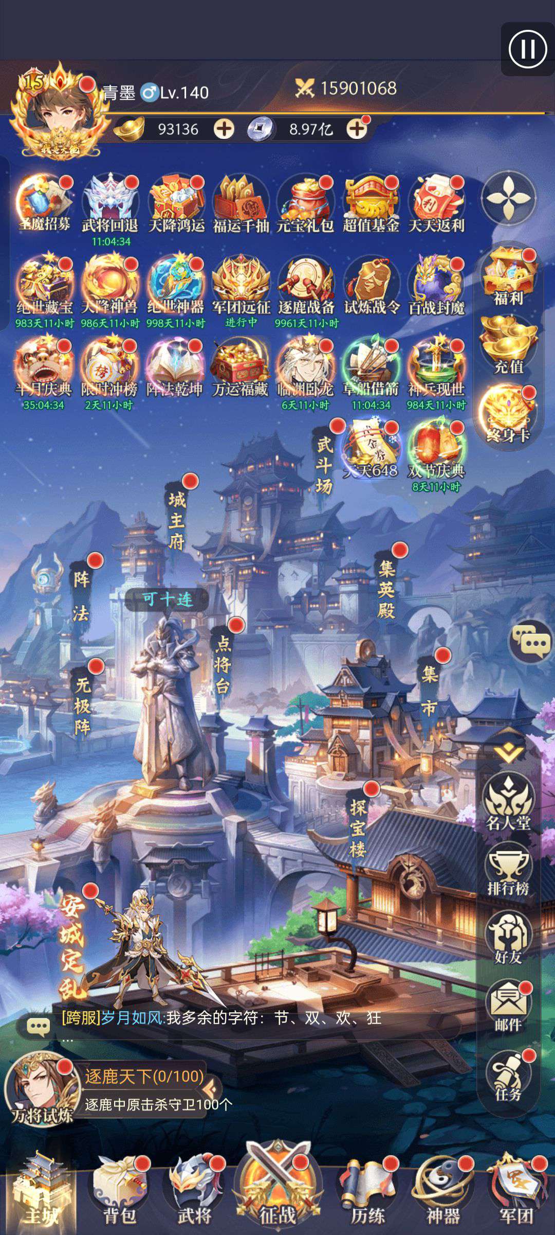 《雄霸天地》手游公益服散人花时间一样可以全身到顶!