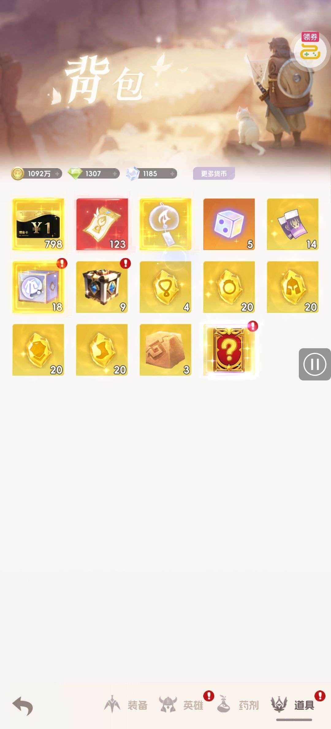 一堆圣晶石6小时*1、募魂令*10、暗淡原石*40(每个账号限领一次)