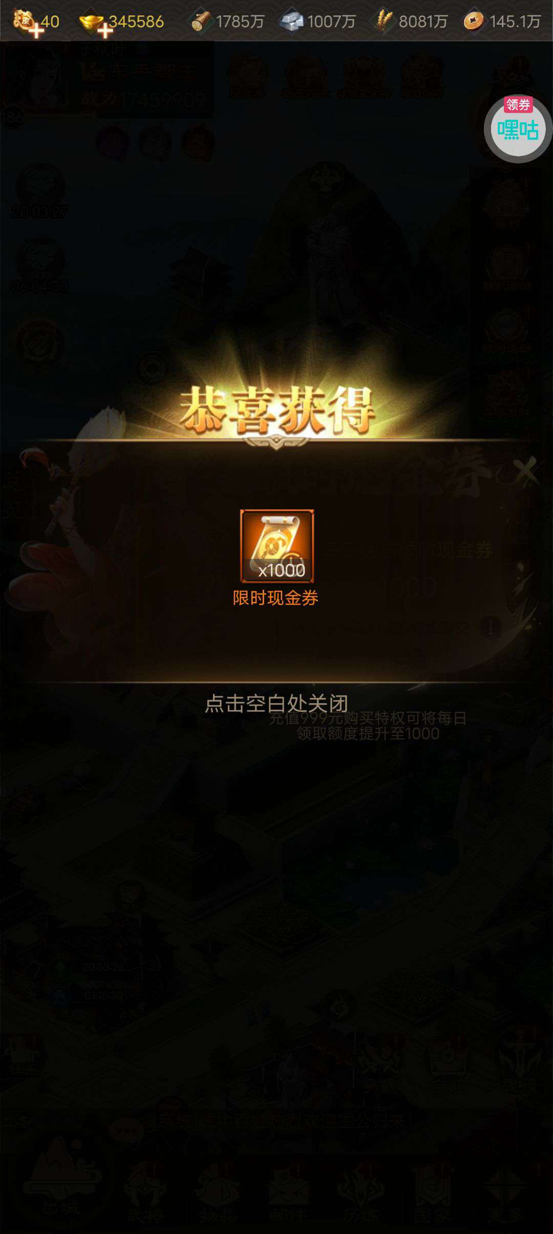 强化药剂*200、钻石招募币*20、金币*50W(每个账号限领一次)