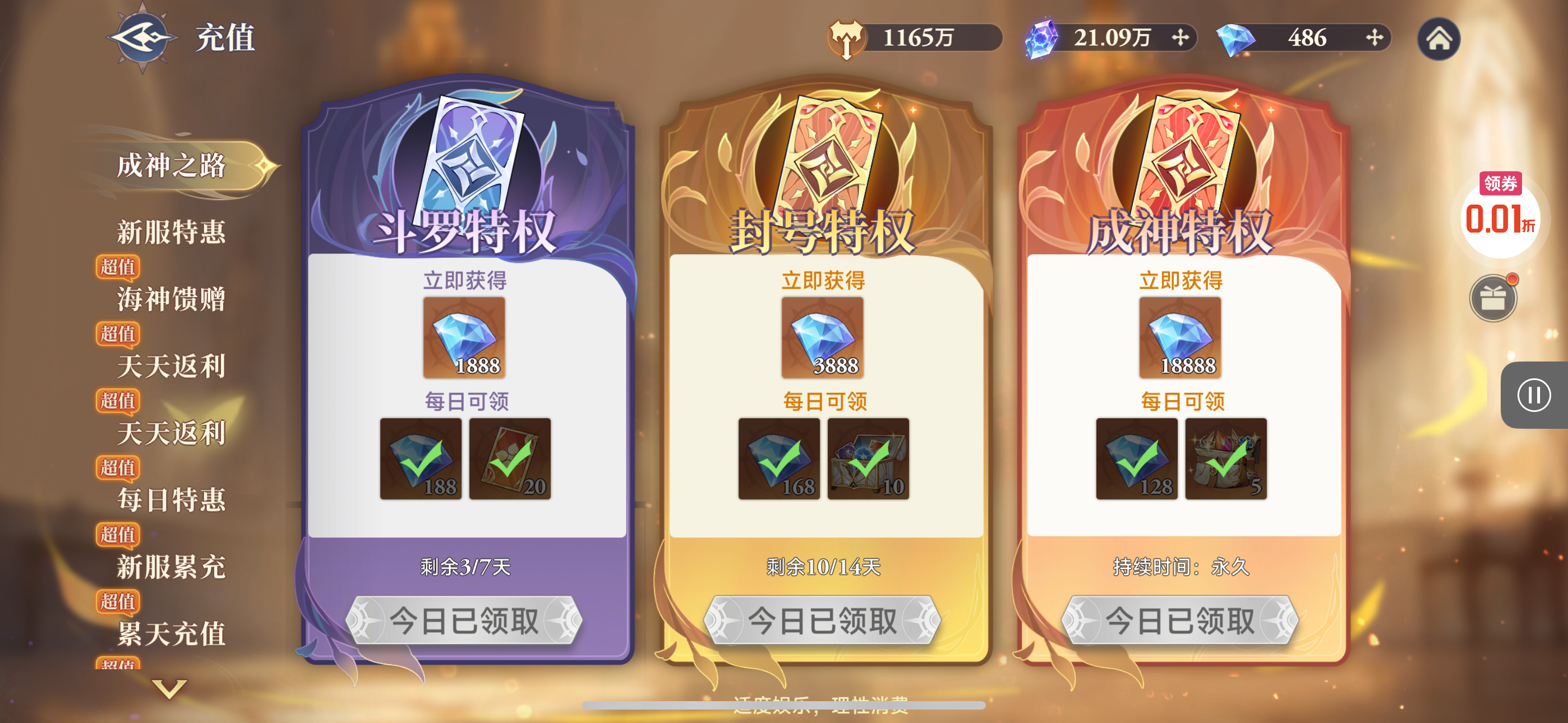 强化药剂*200、钻石招募币*20、金币*50W(每个账号限领一次)