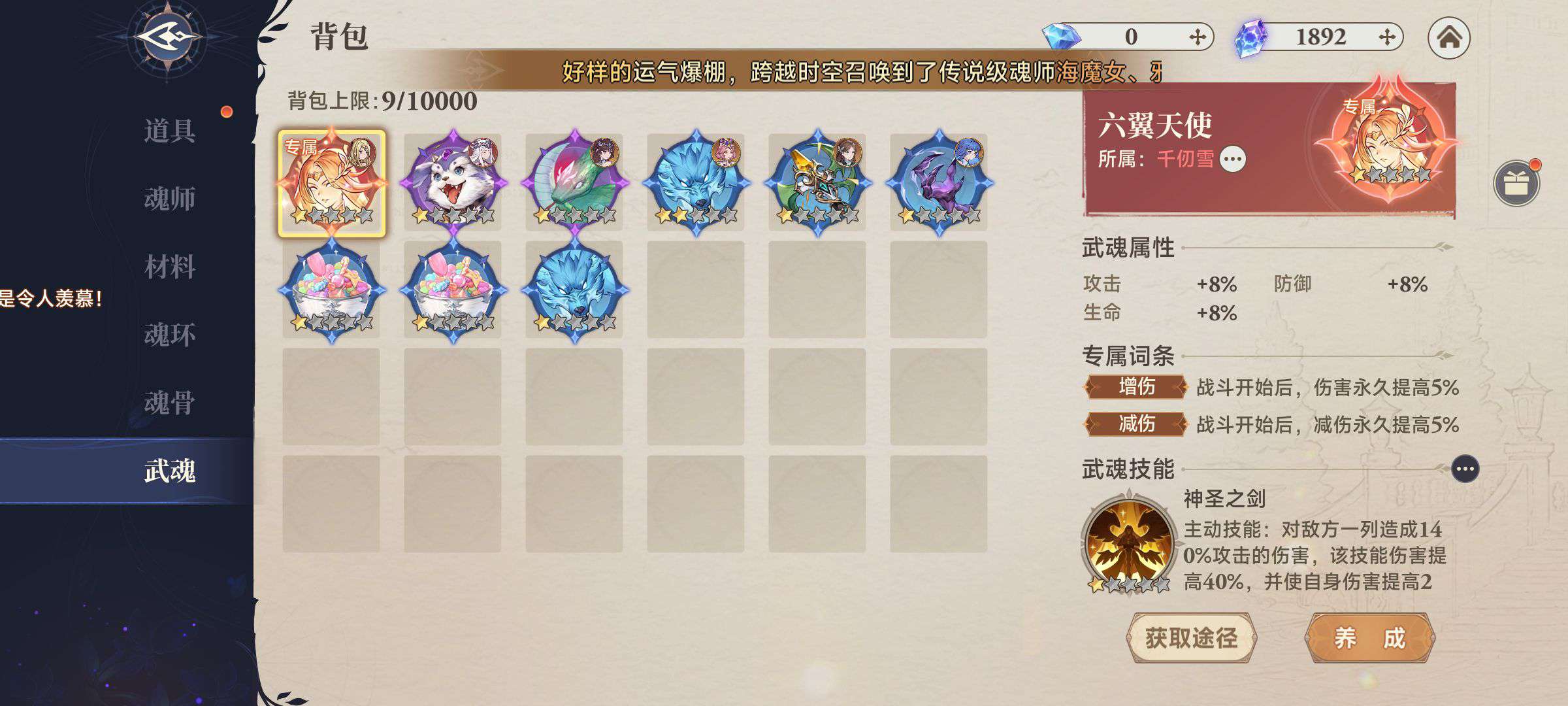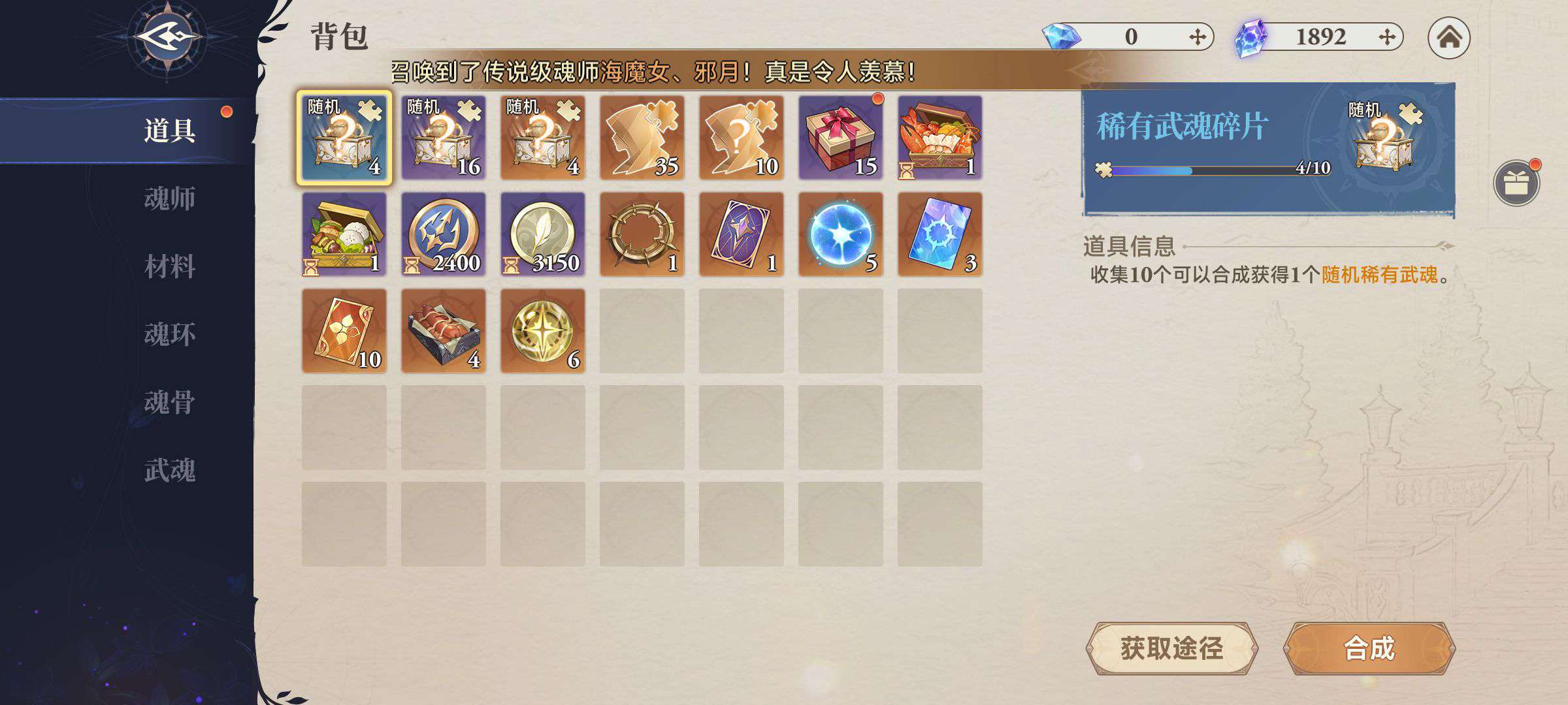 魂晶*888,魂师召唤券*10,武魂水晶*5(每个账号限领一次)