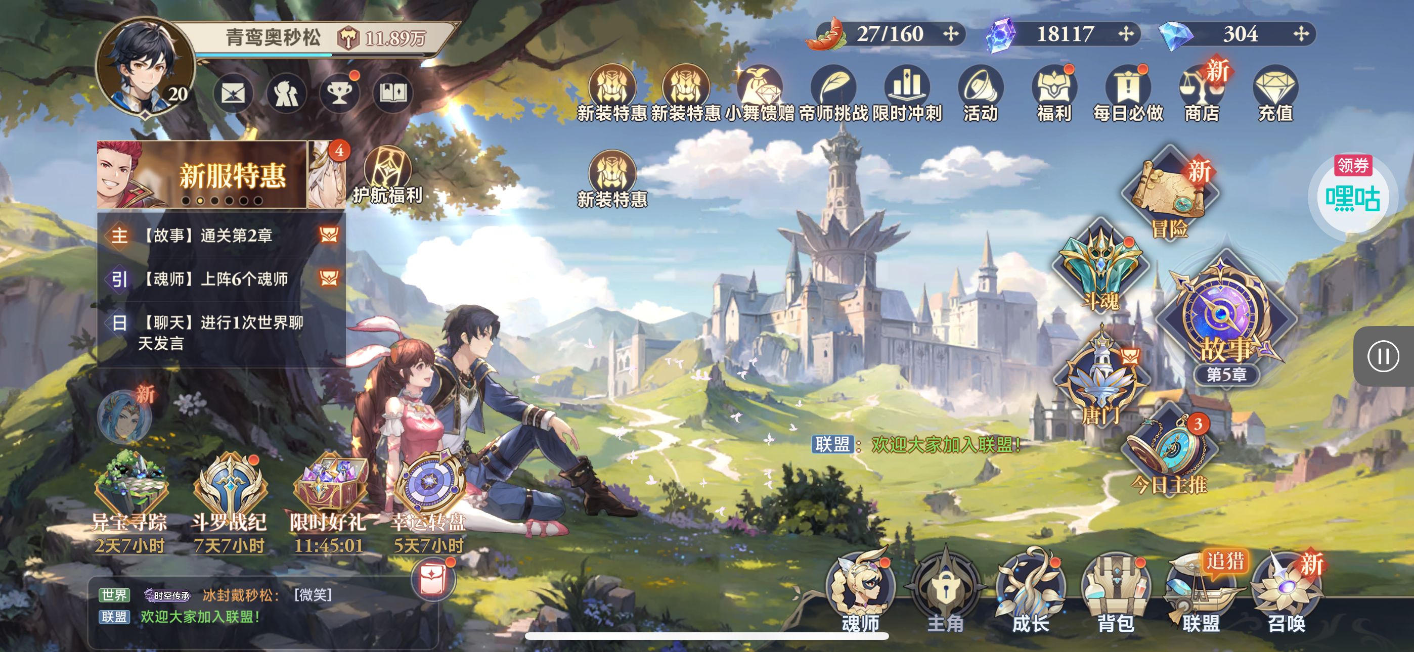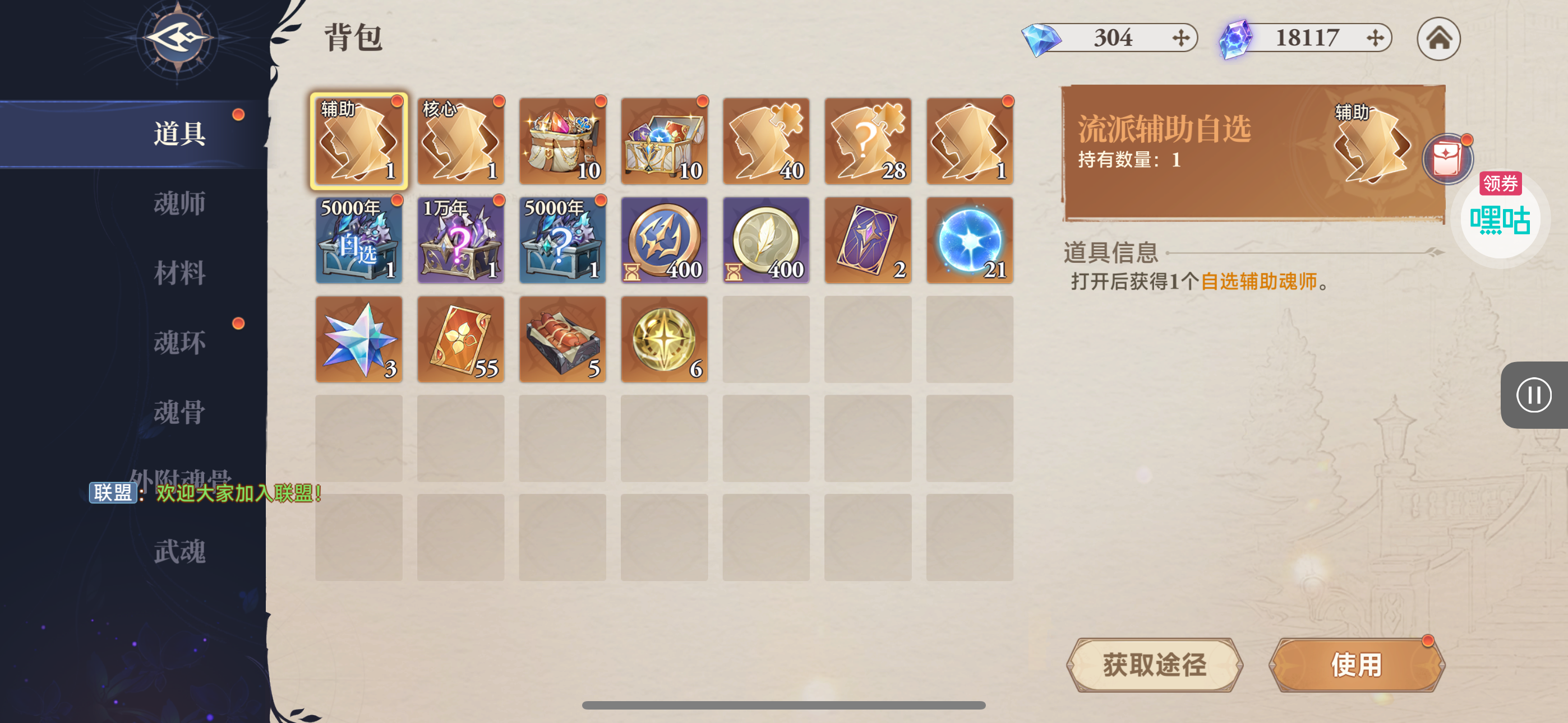 魂晶*888,魂师召唤券*10,武魂水晶*5(每个账号限领一次)