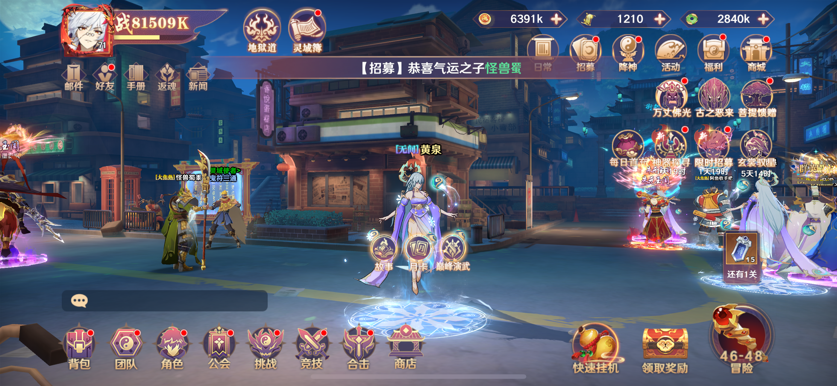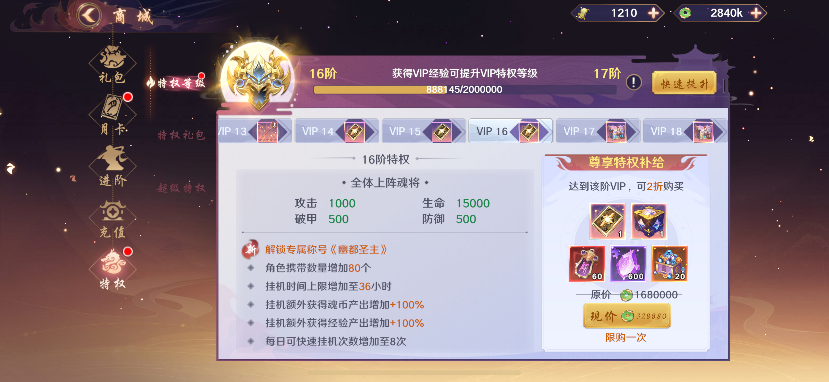 金条*588,白银占卜币*12,鬼神经验*250000(每个账号限领一次)