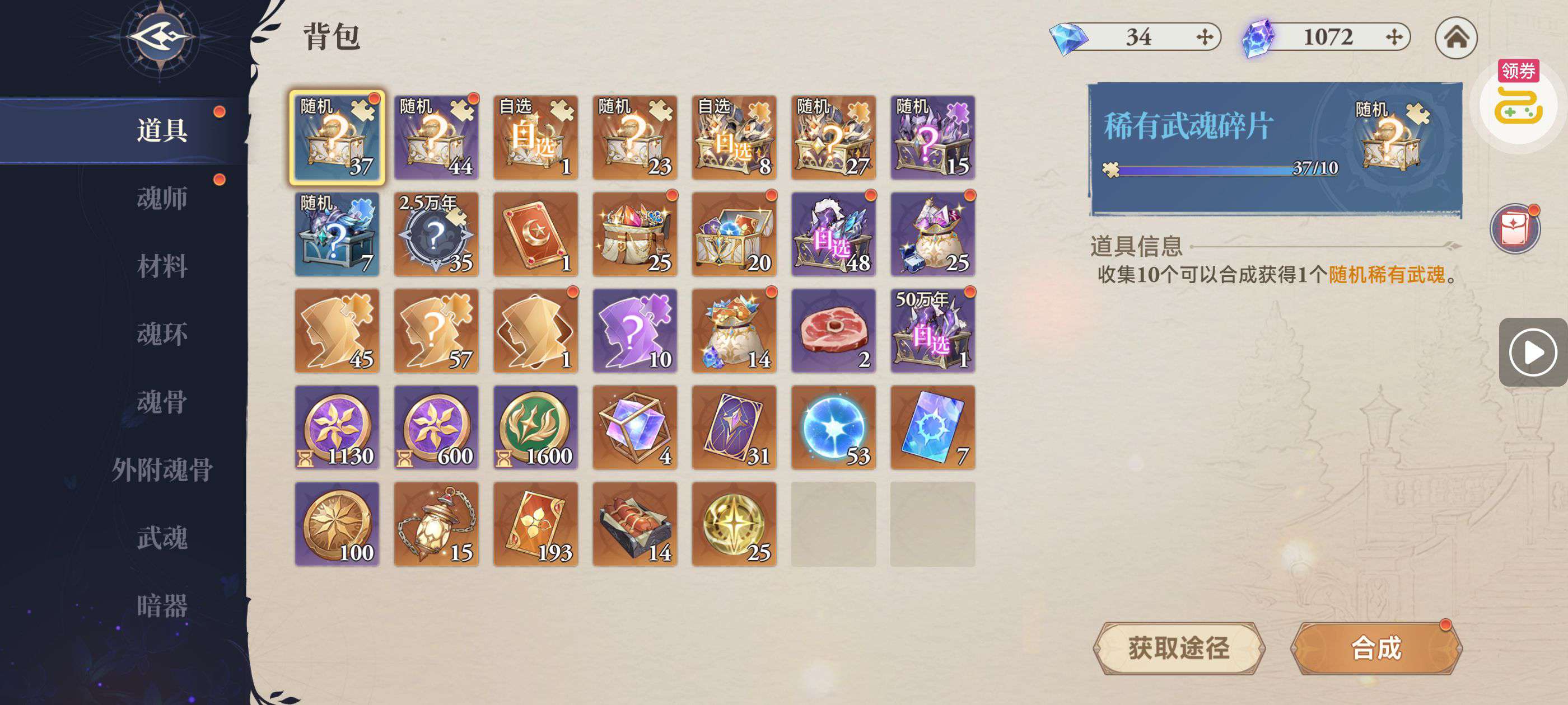 魂晶*888,魂师召唤券*10,武魂水晶*5(每个账号限领一次)