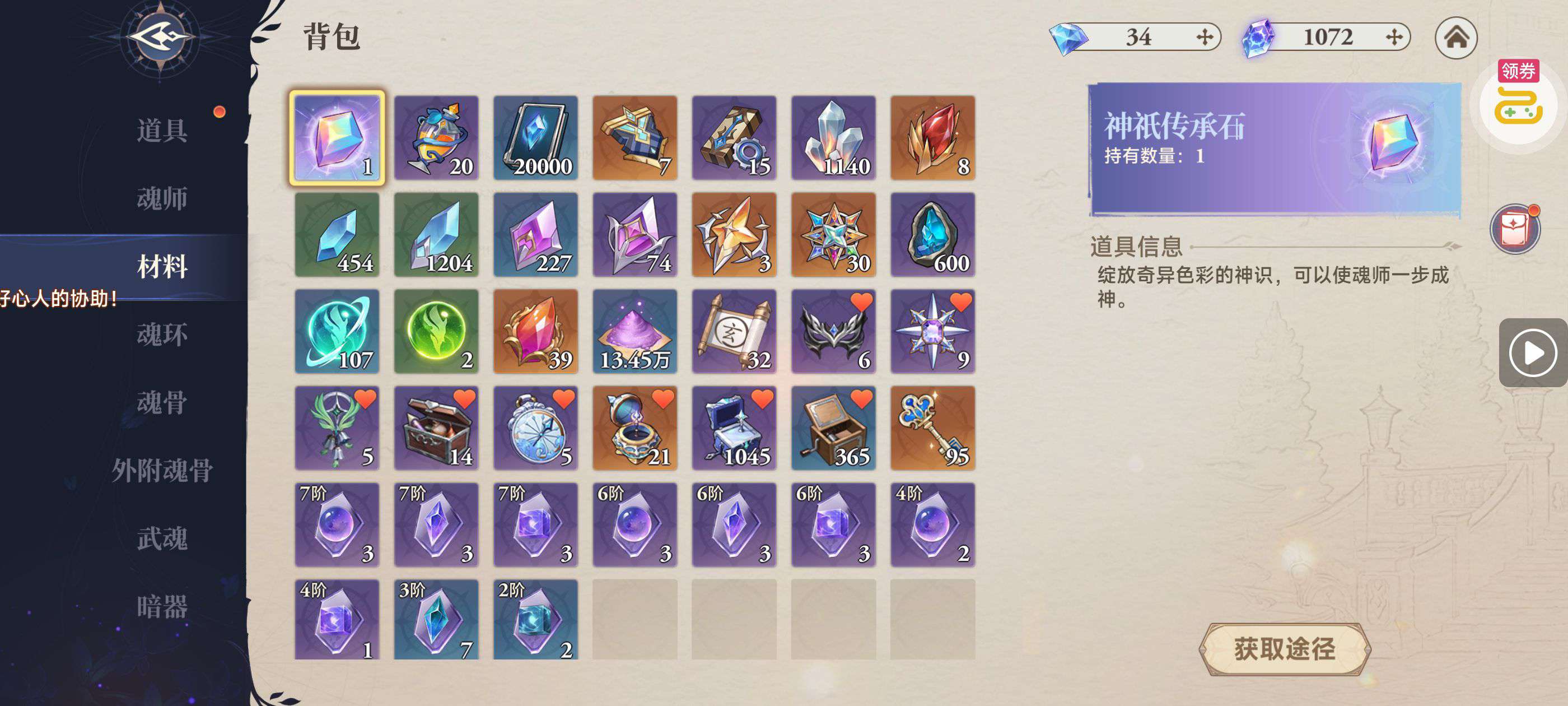一堆圣晶石6小时*1、募魂令*10、暗淡原石*40(每个账号限领一次)