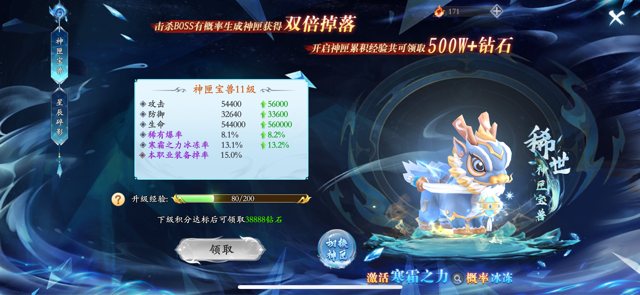 强化药剂*200、钻石招募币*20、金币*50W(每个账号限领一次)