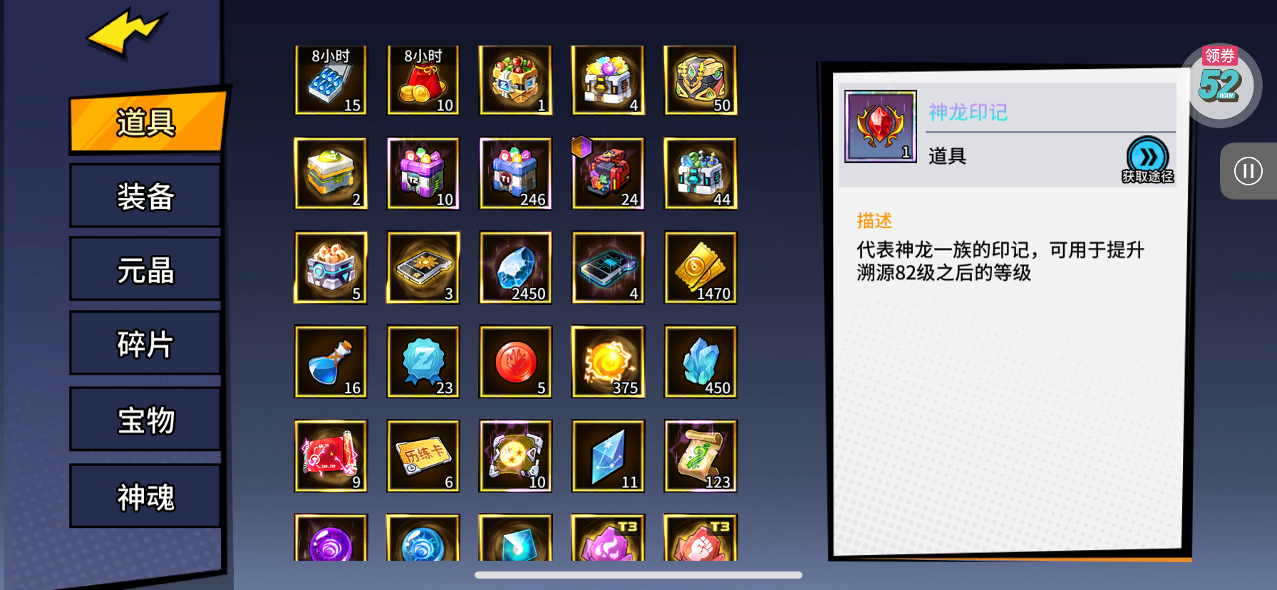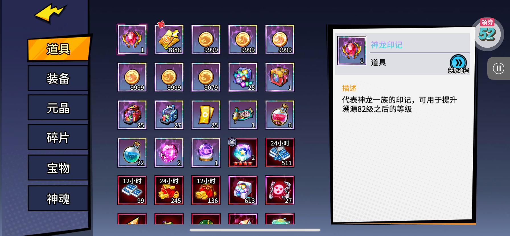 一堆圣晶石6小时*1、募魂令*10、暗淡原石*40(每个账号限领一次)