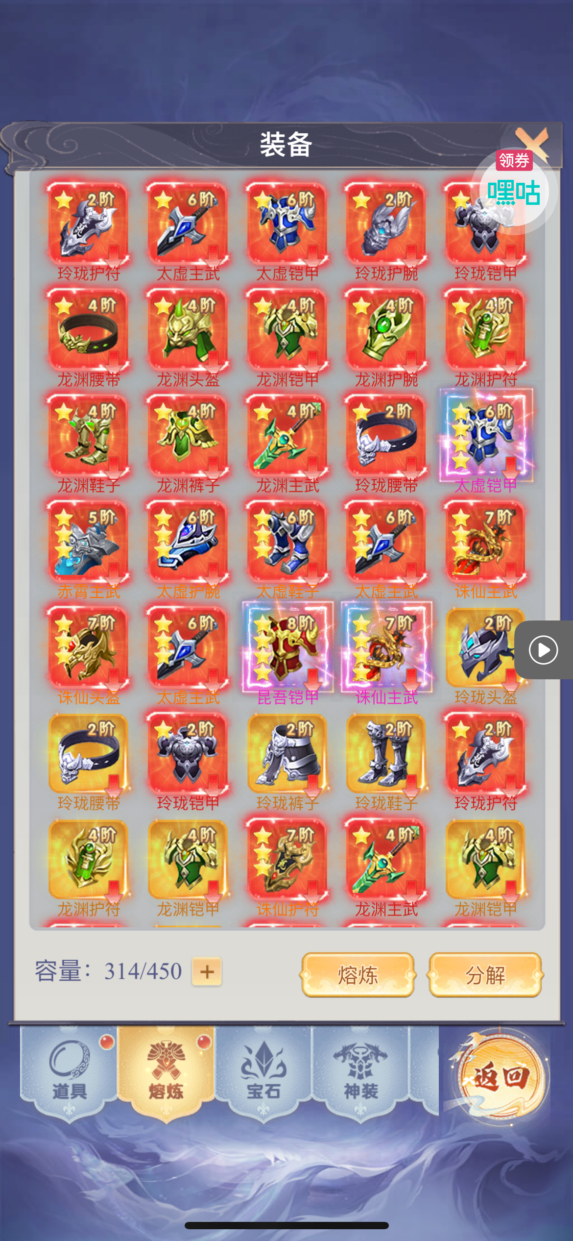 一堆圣晶石6小时*1、募魂令*10、暗淡原石*40(每个账号限领一次)