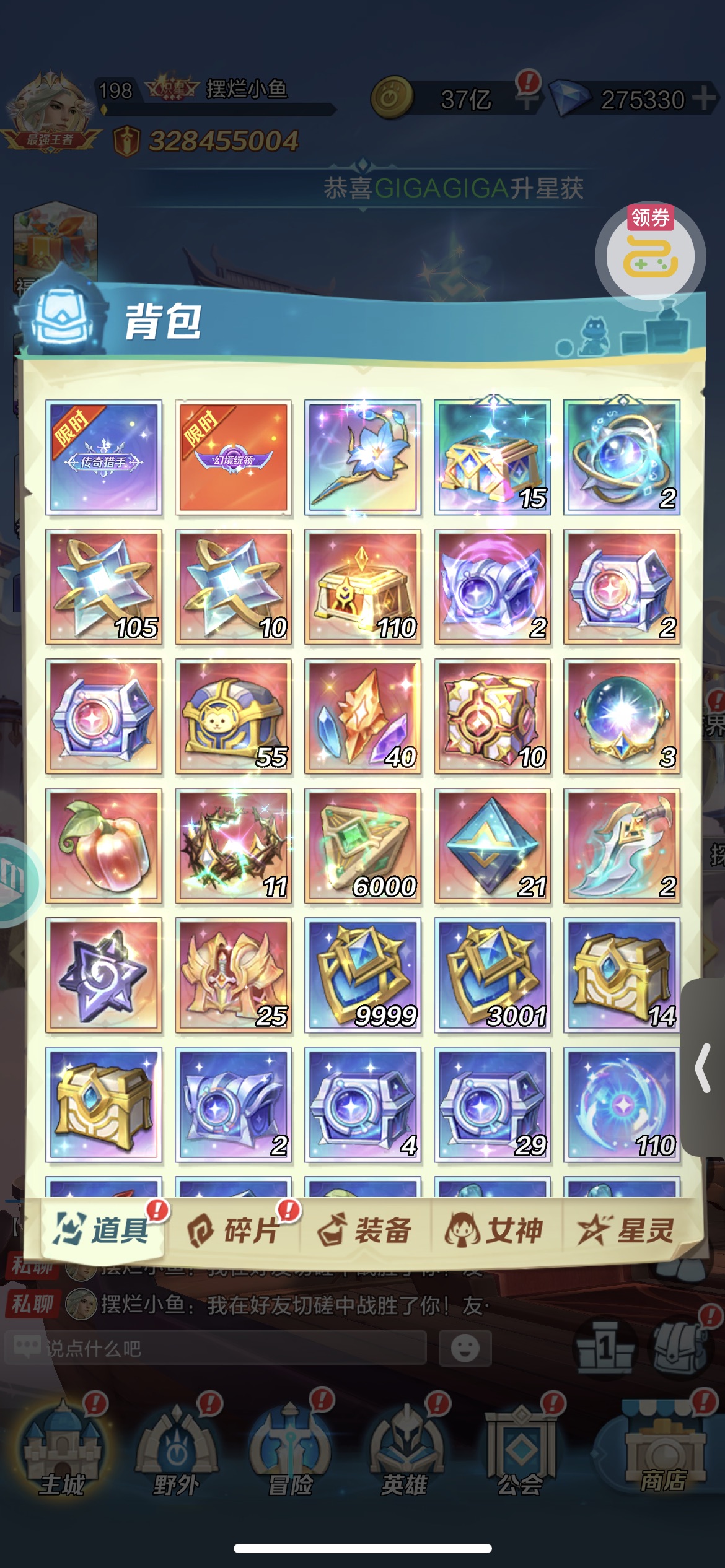 一堆圣晶石6小时*1、募魂令*10、暗淡原石*40(每个账号限领一次)