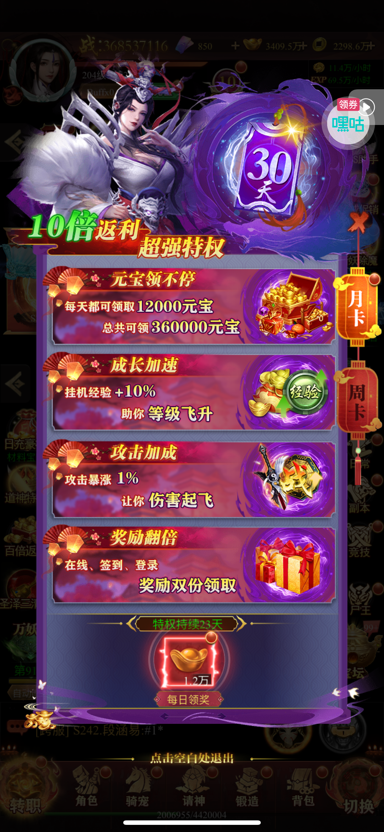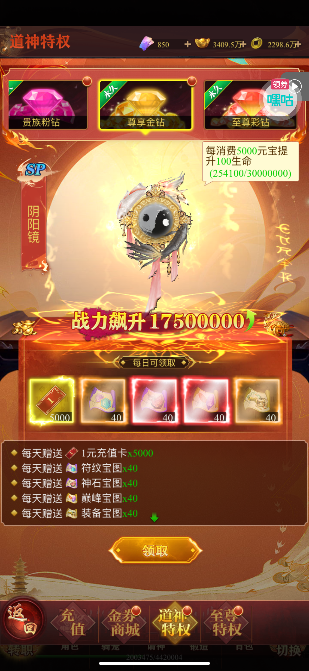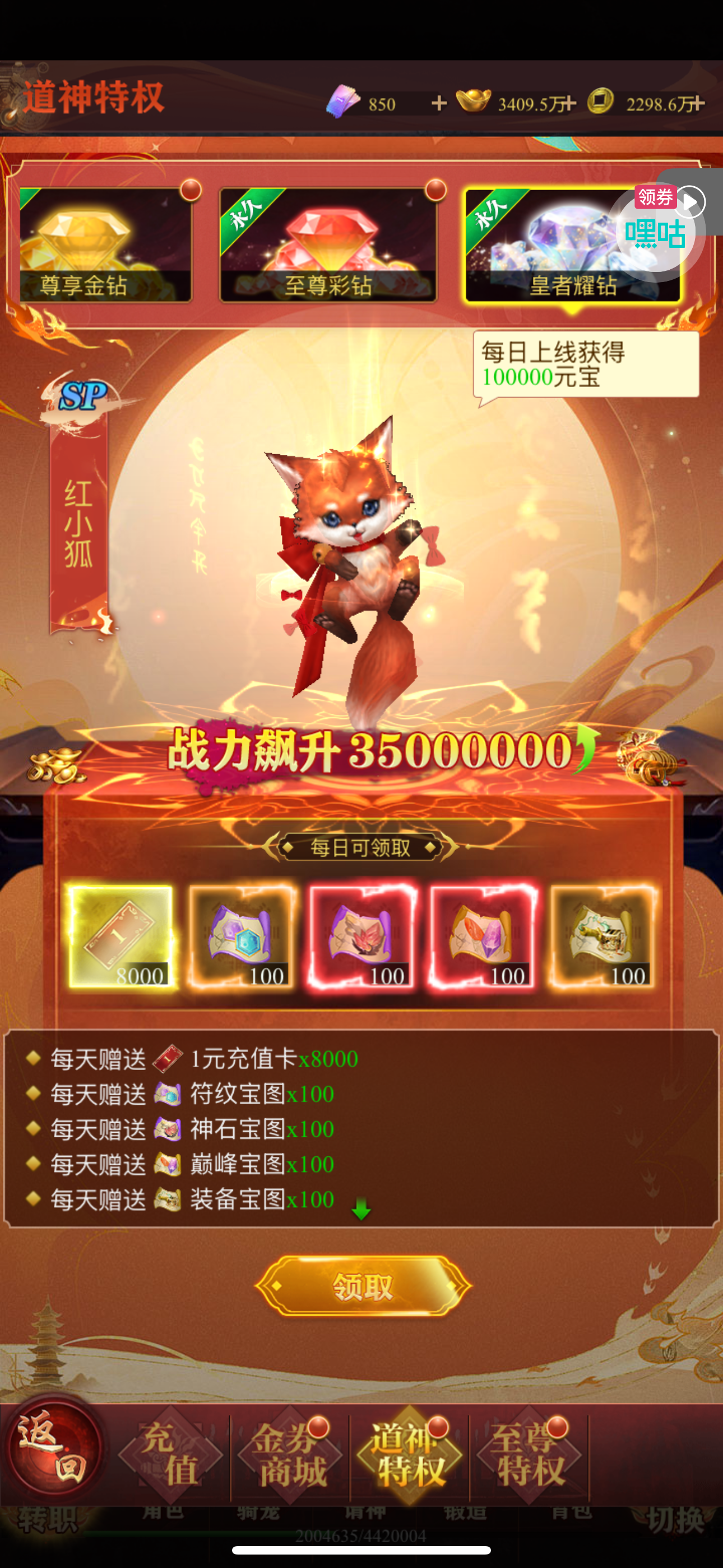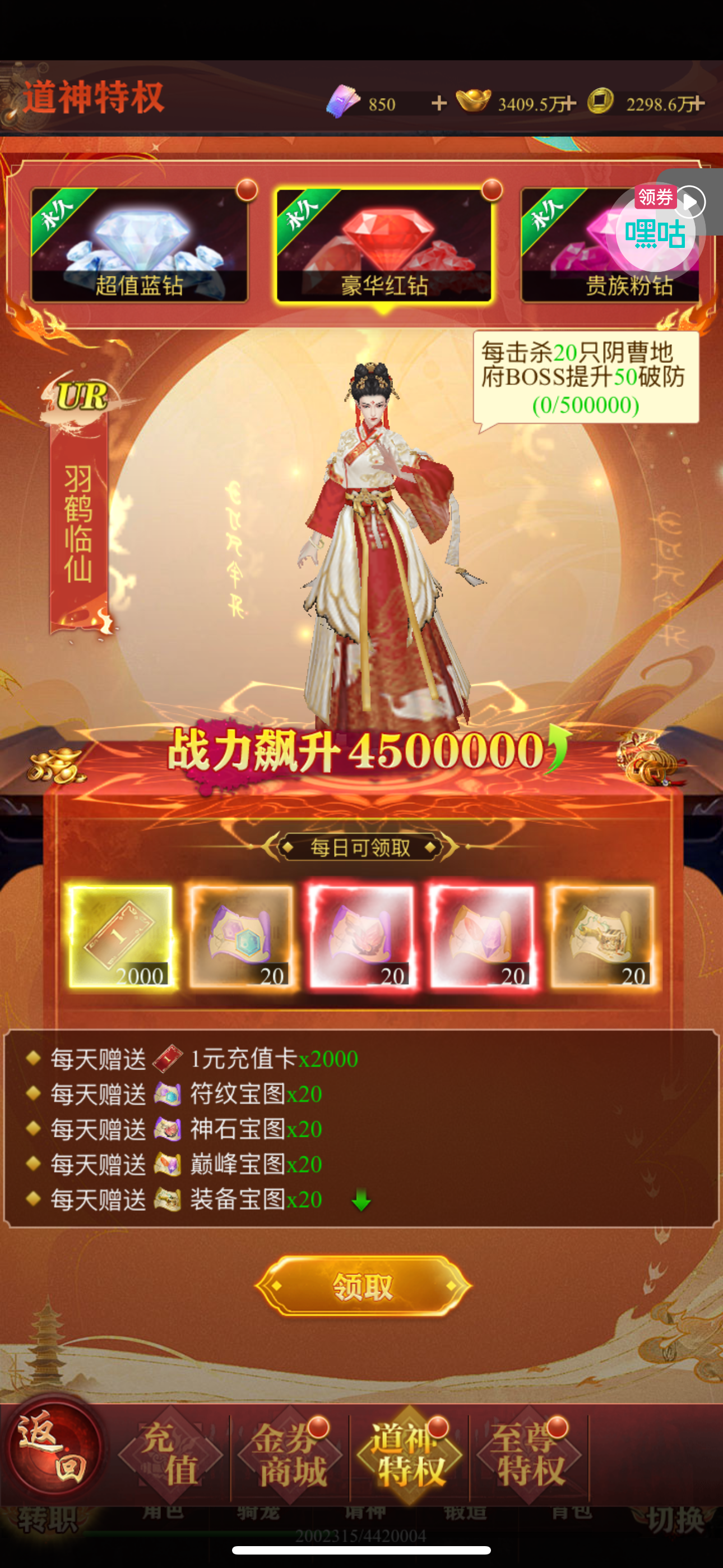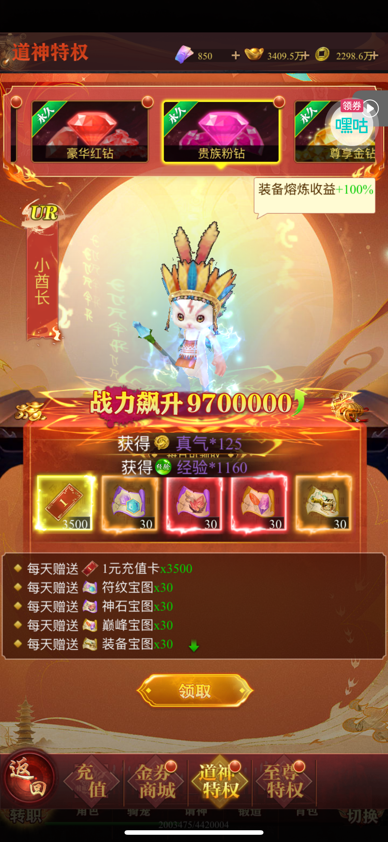 强化药剂*200、钻石招募币*20、金币*50W(每个账号限领一次)