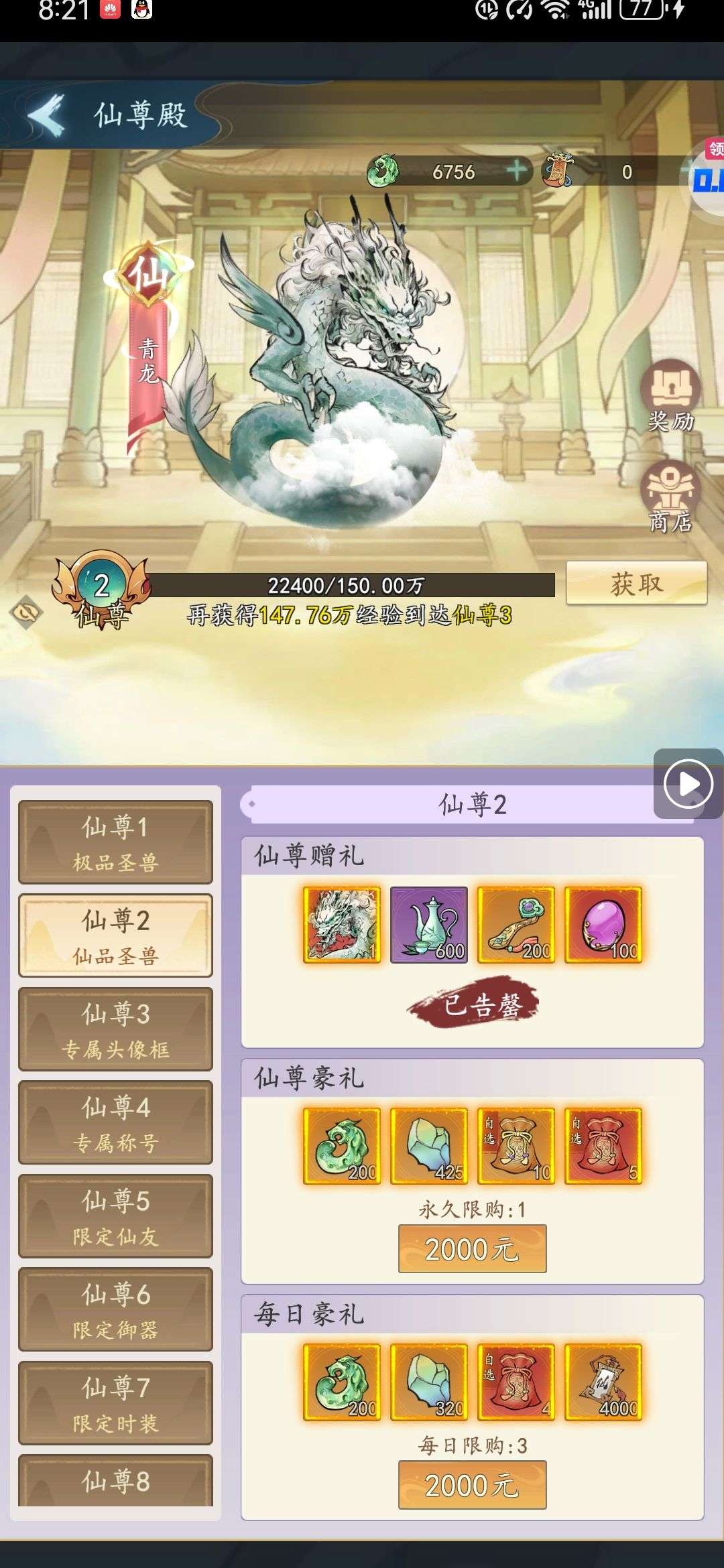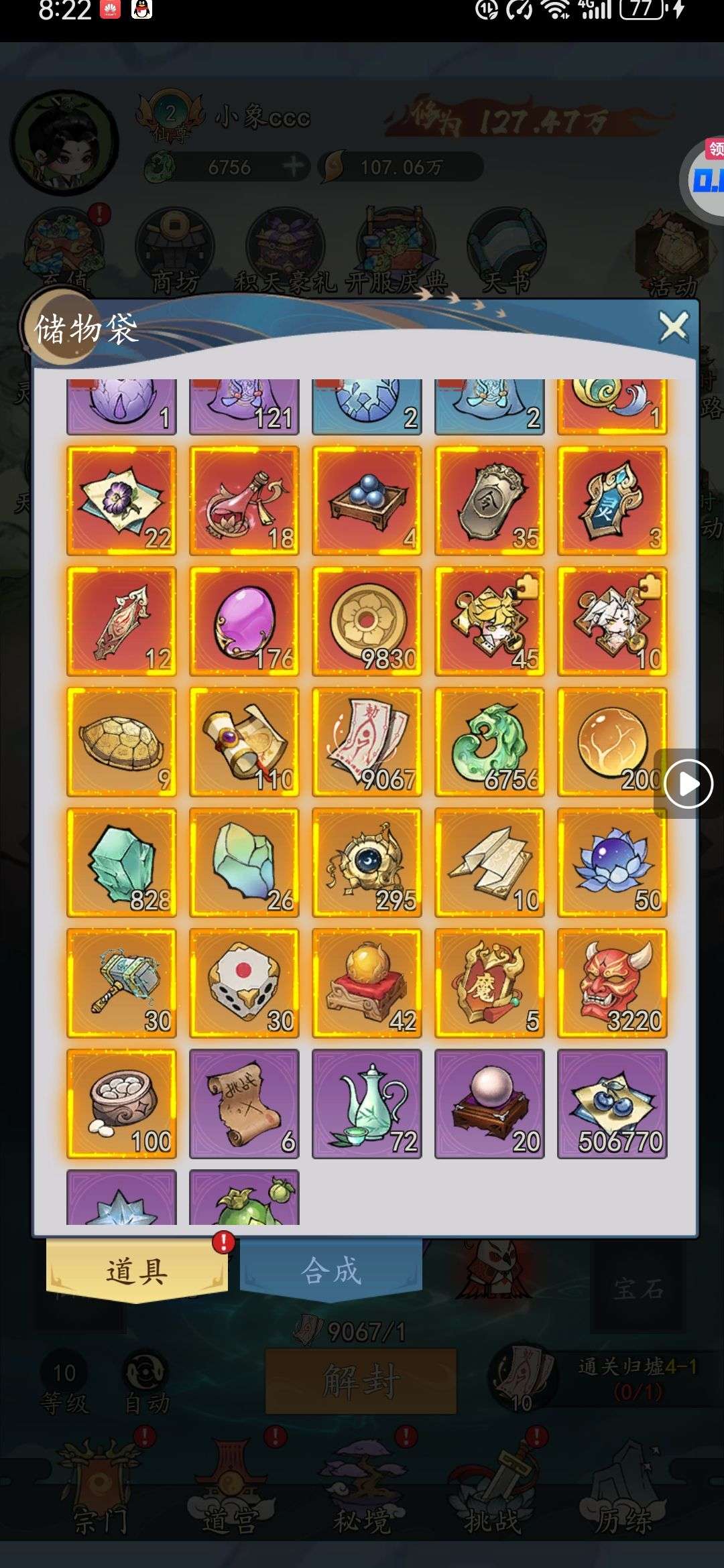 仙尊2 修为127.47w 已有终身卡源石基金等物品 等级83元婴中期
