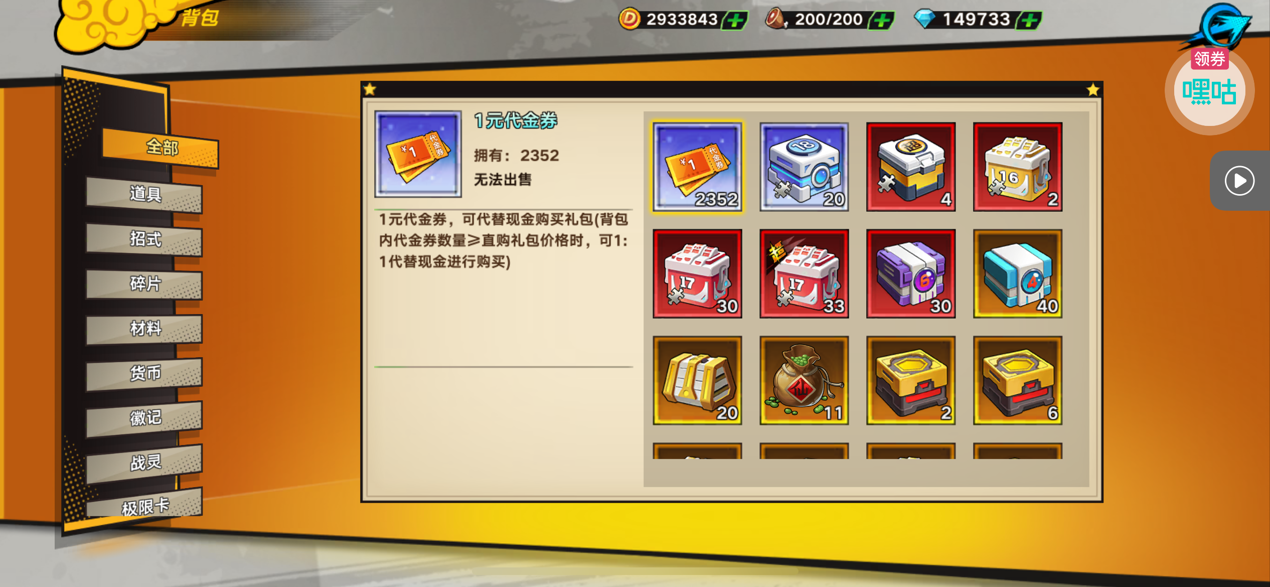 魂晶*888,魂师召唤券*10,武魂水晶*5(每个账号限领一次)