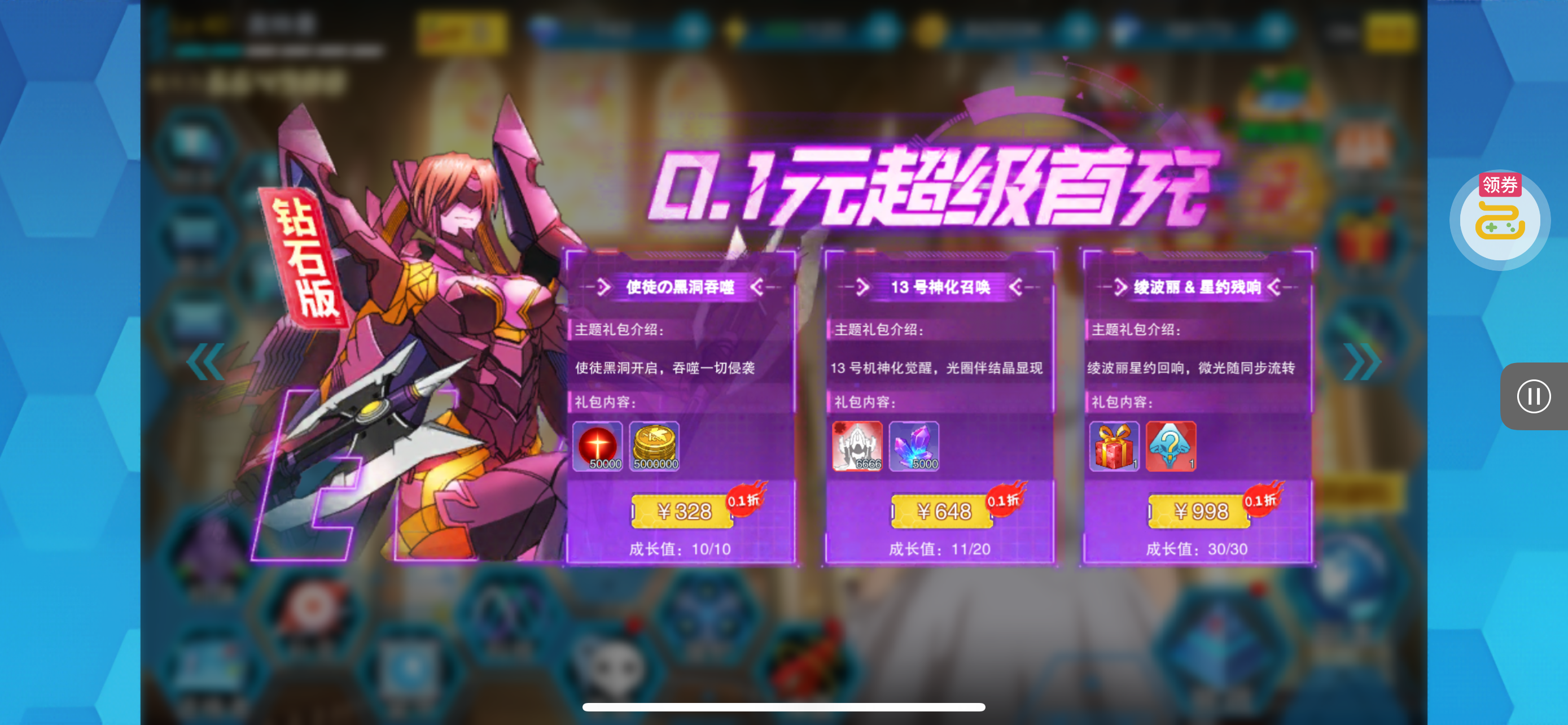 强化药剂*200、钻石招募币*20、金币*50W(每个账号限领一次)