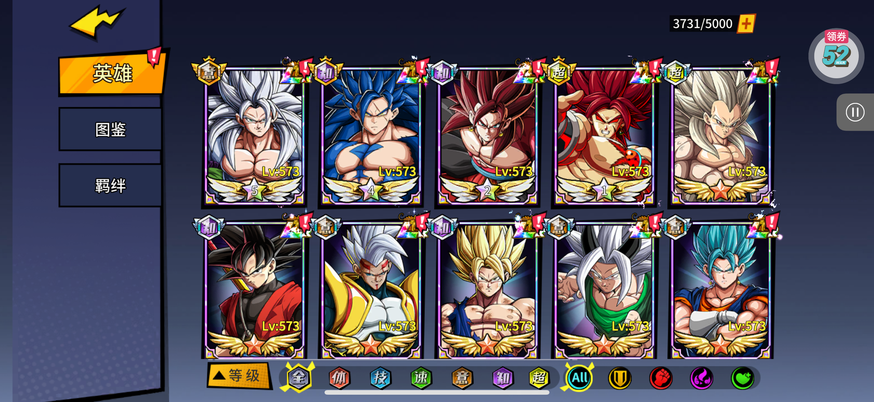 角色等级520级,肝了6个月,微氪便宜出售,究极元晶顶级元晶都有,主打等级压制,所有特权都开了,玩家等级200多级,马上出t4装备石,白嫖玩家可以继续白嫖悟饭和超五高星LR,氪金玩家可以直接氪超系LR,加上520等级压制,可以打赢大多数玩家