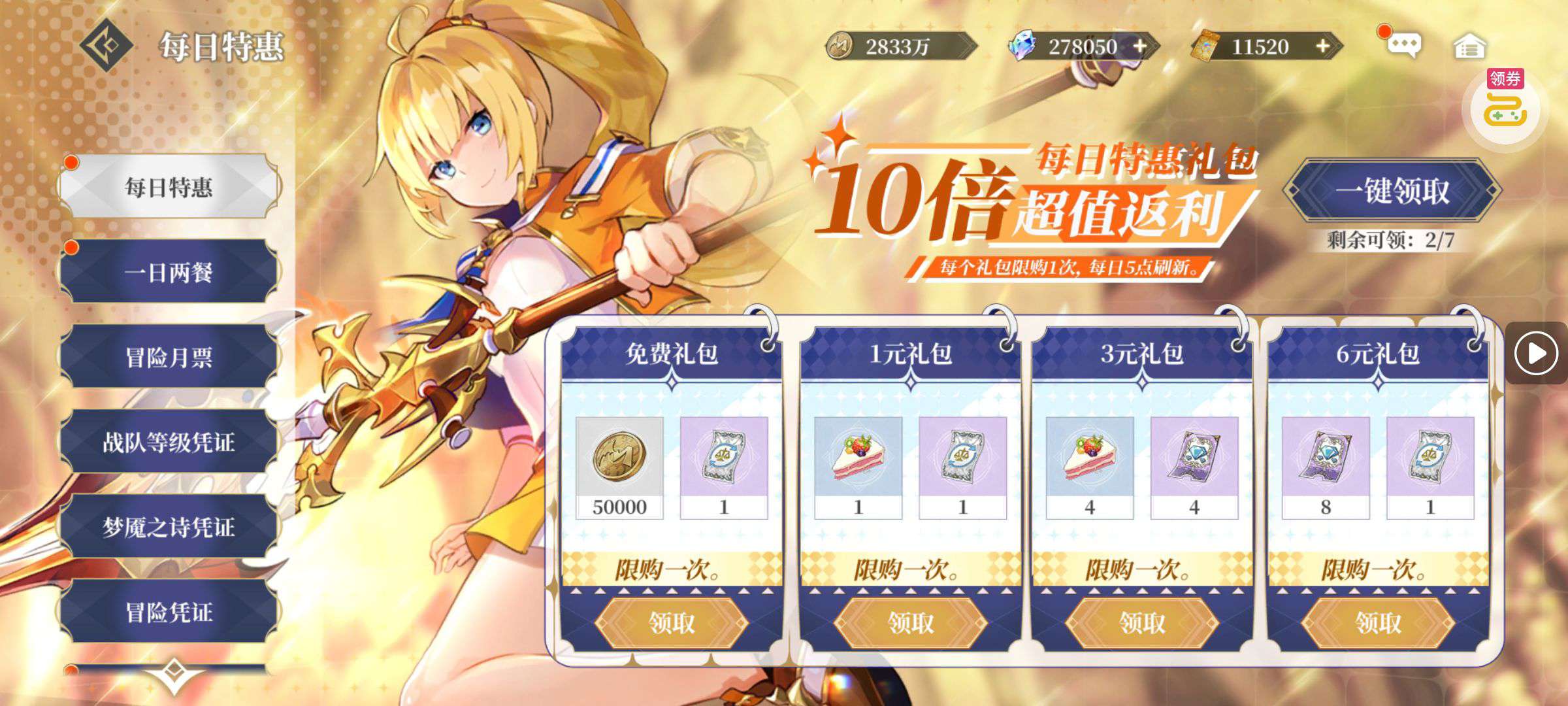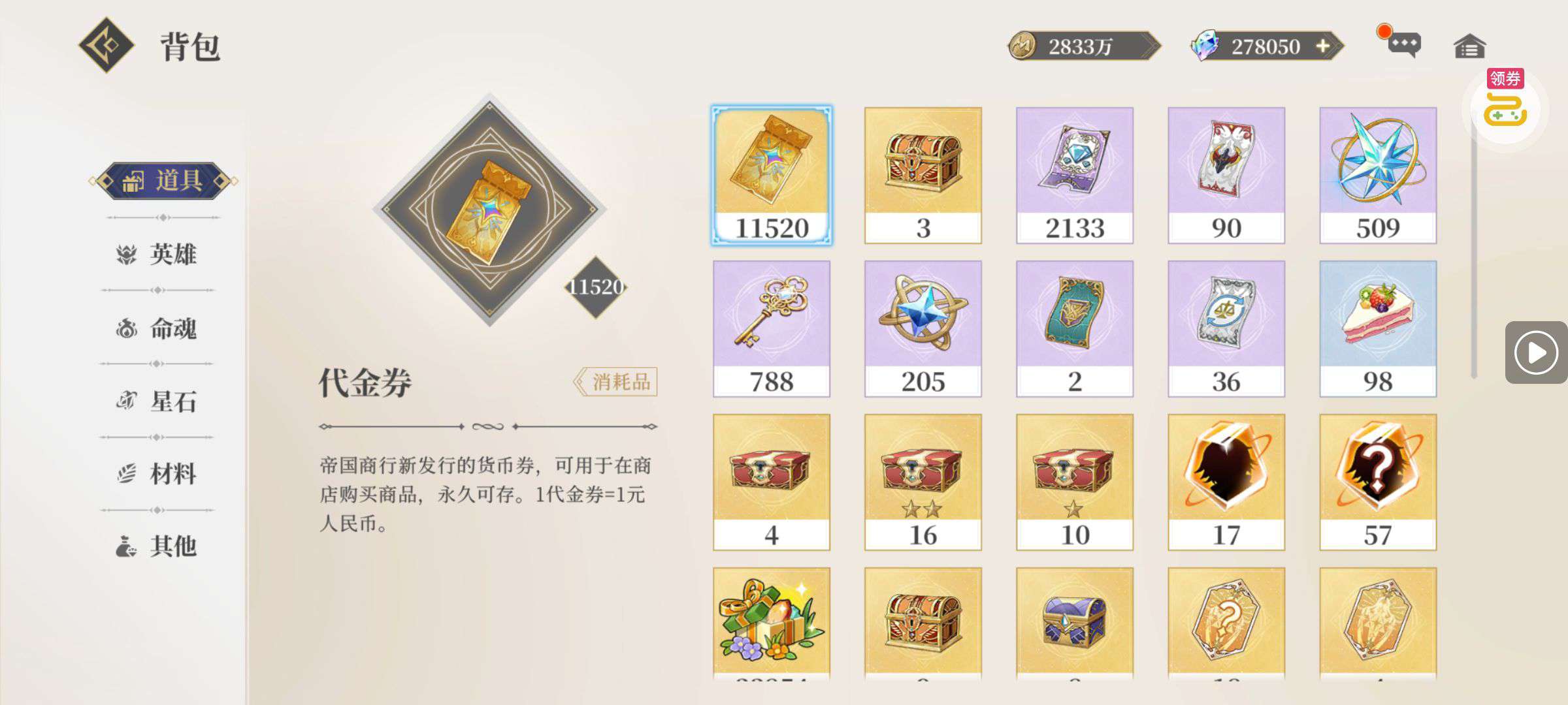 一堆圣晶石6小时*1、募魂令*10、暗淡原石*40(每个账号限领一次)