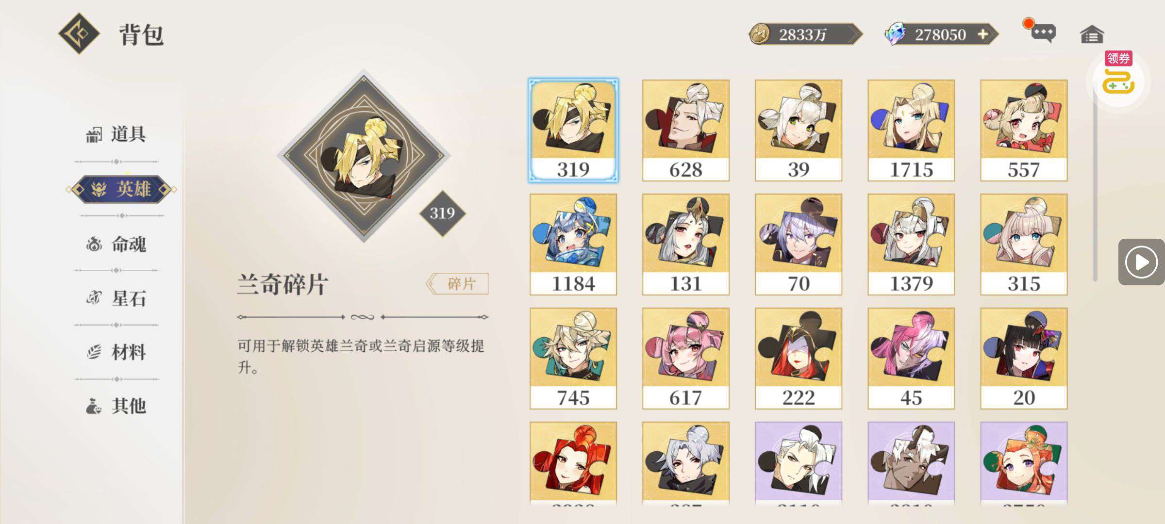 钻石*188,英灵祈愿券*10,金币*10000(每个账号限领一次)