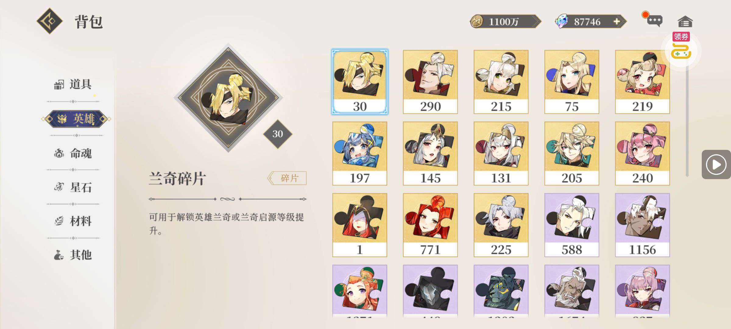 钻石*188,英灵祈愿券*10,金币*10000(每个账号限领一次)