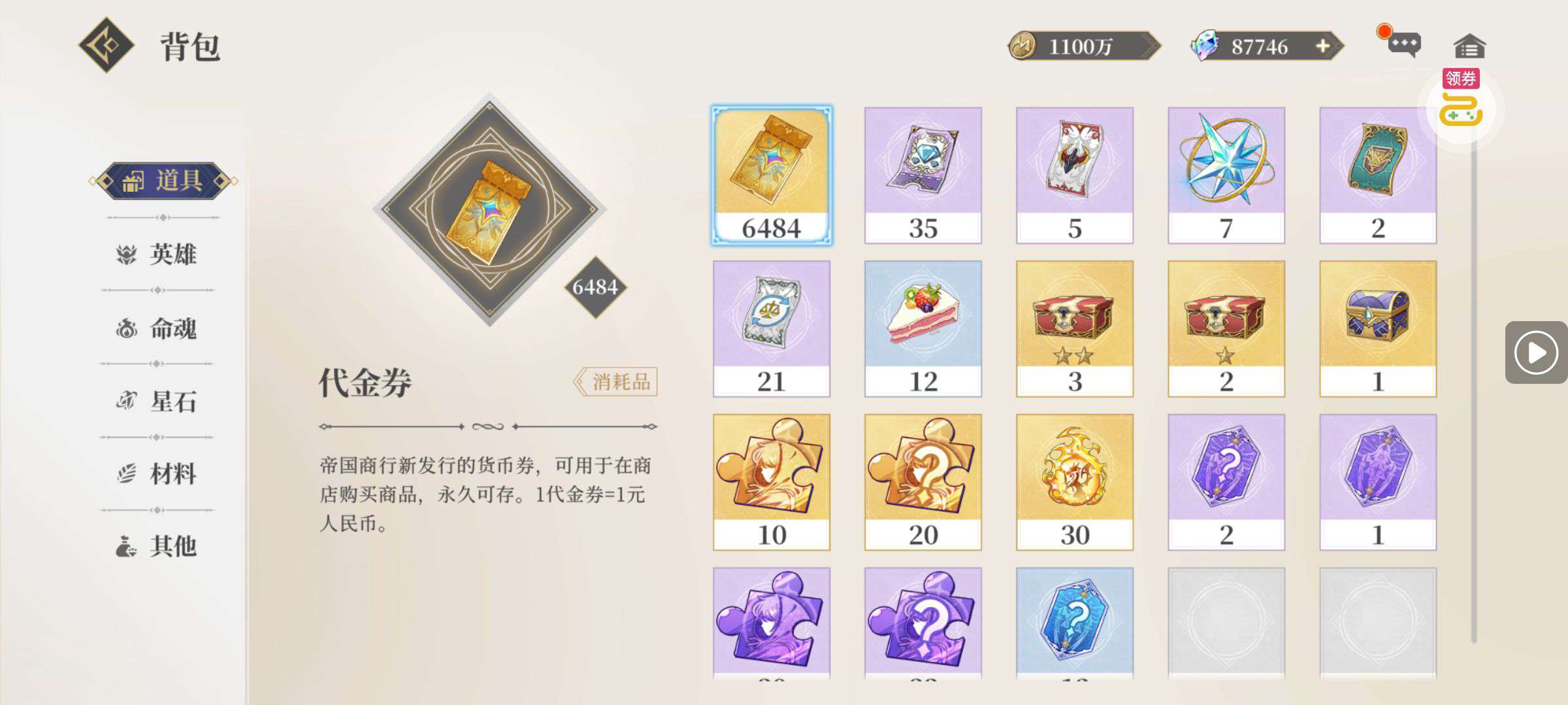 魂晶*888,魂师召唤券*10,武魂水晶*5(每个账号限领一次)