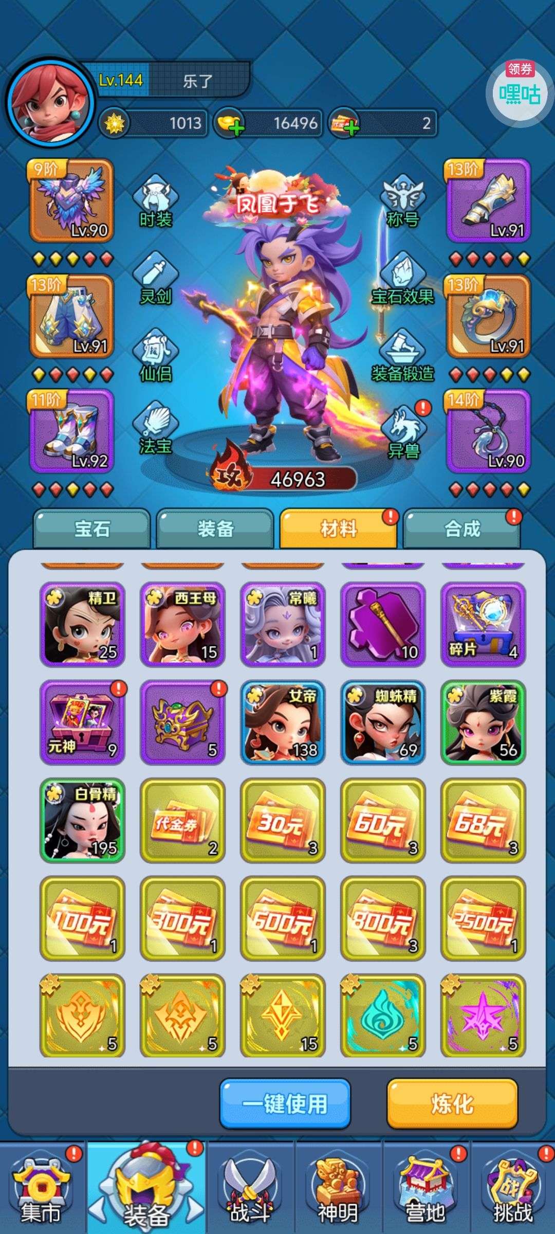 精品号,啥都有,宝石每个神明的套装都有,洗练石1000多