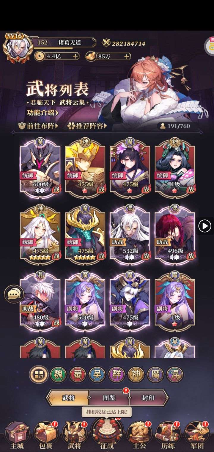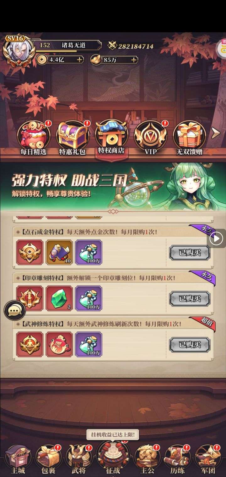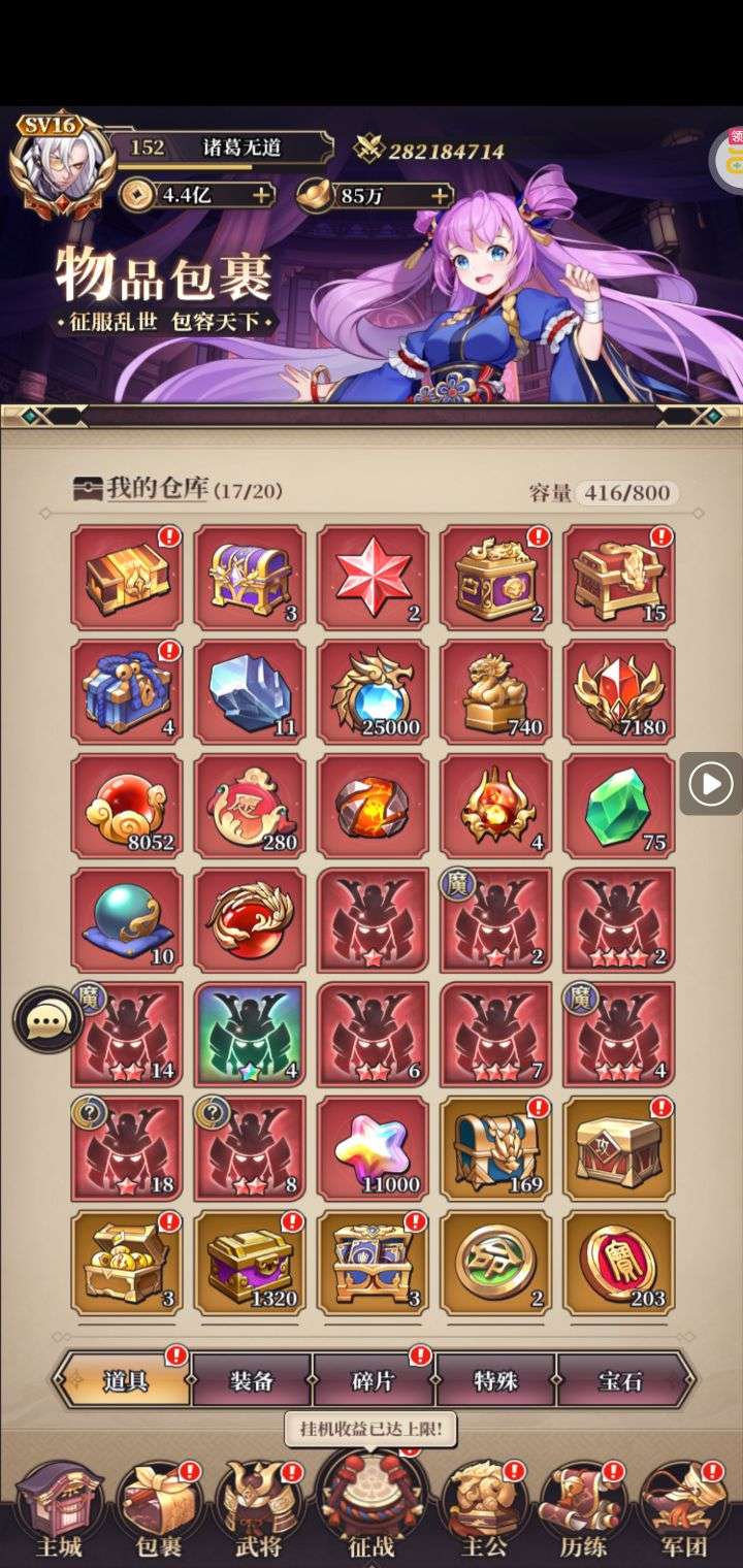 主角基本满了,混沌李白也不差,三国币还有16W多