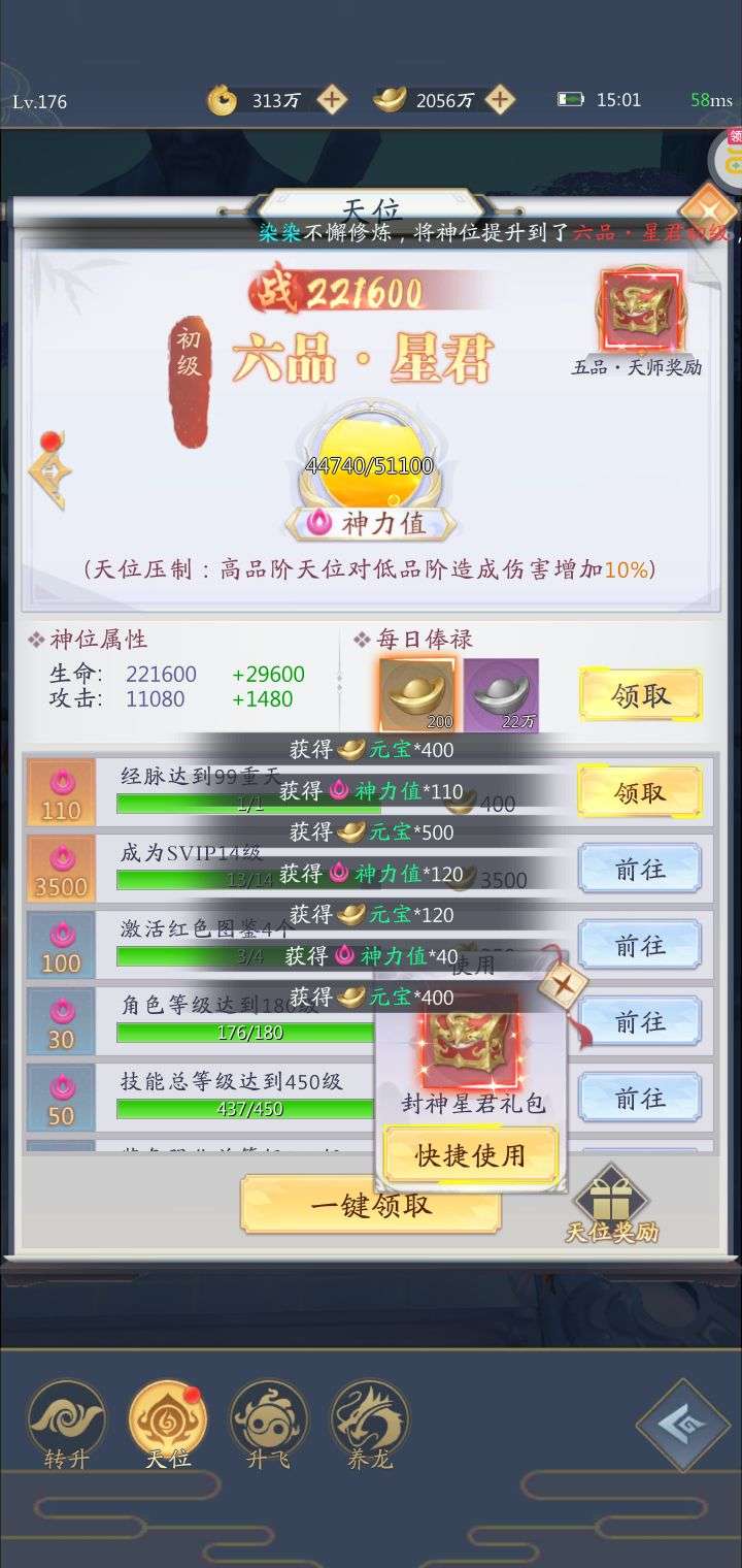 洗髓丹*50、银两袋*10(每个账号限领一次)
