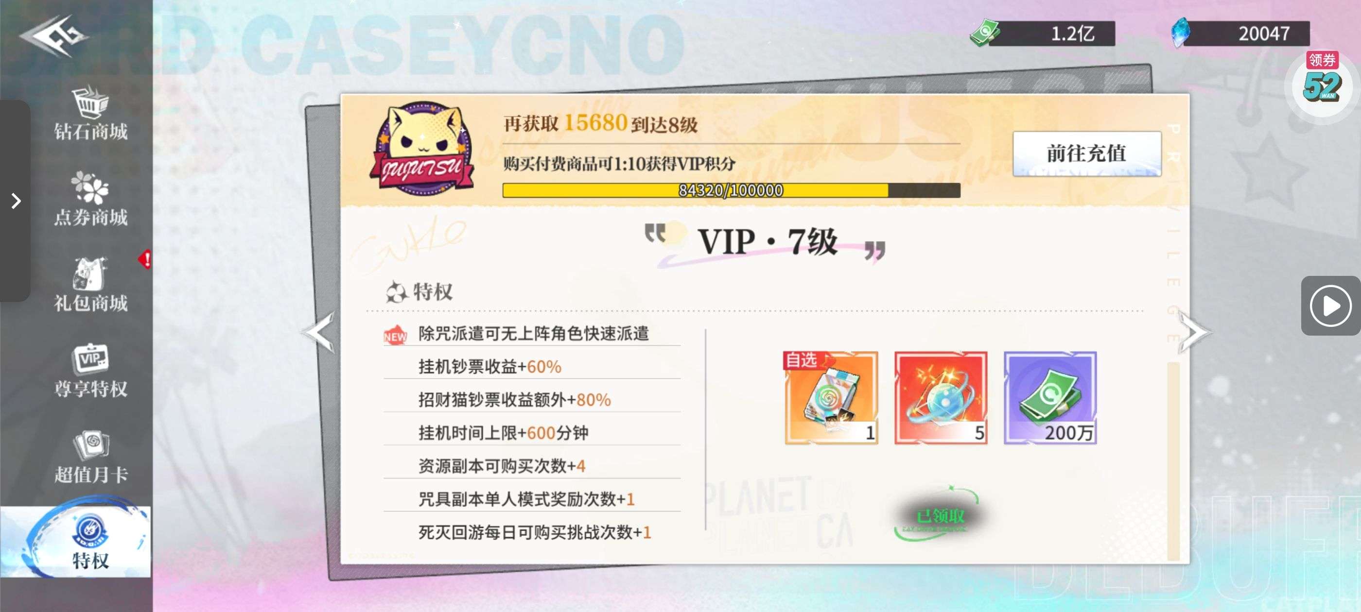 强化药剂*200、钻石招募币*20、金币*50W(每个账号限领一次)
