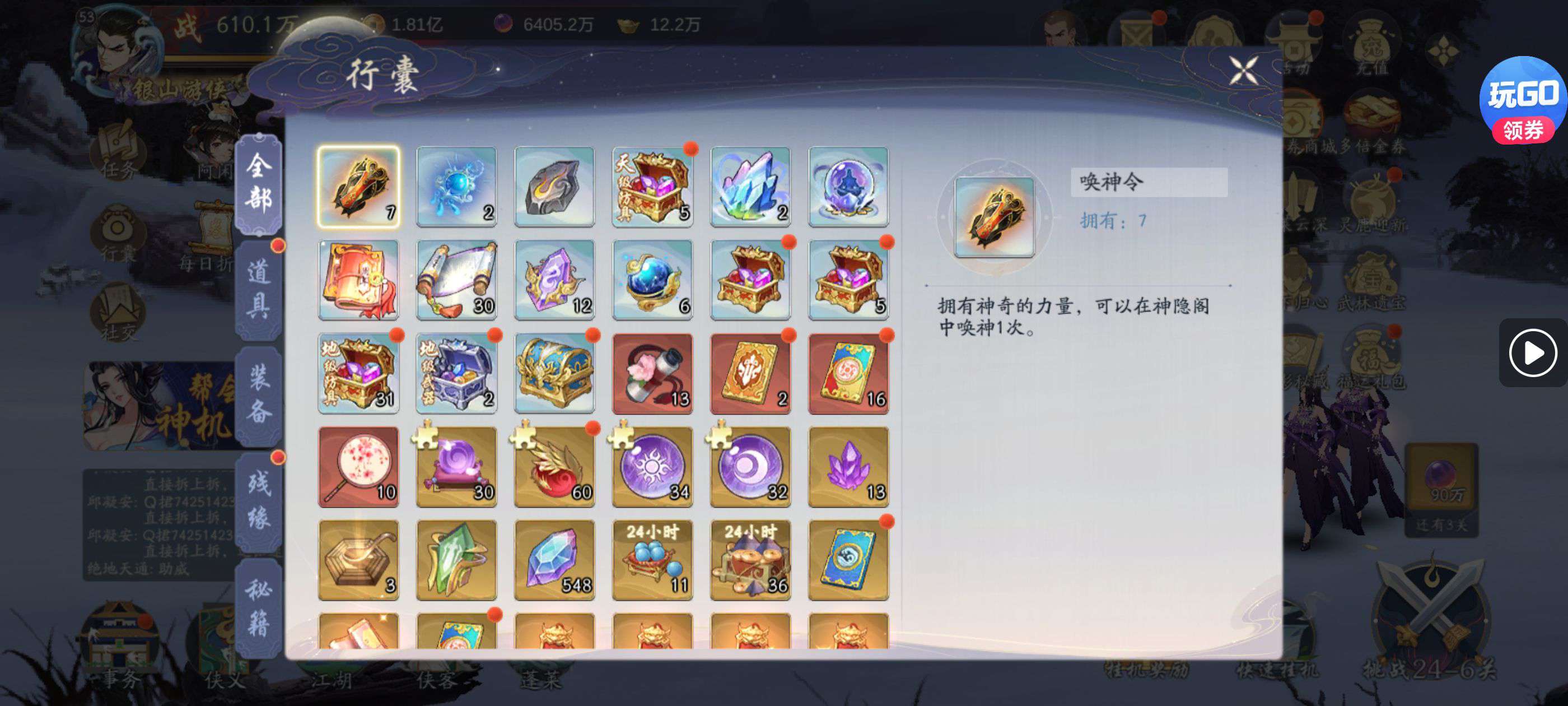 一堆圣晶石6小时*1、募魂令*10、暗淡原石*40(每个账号限领一次)