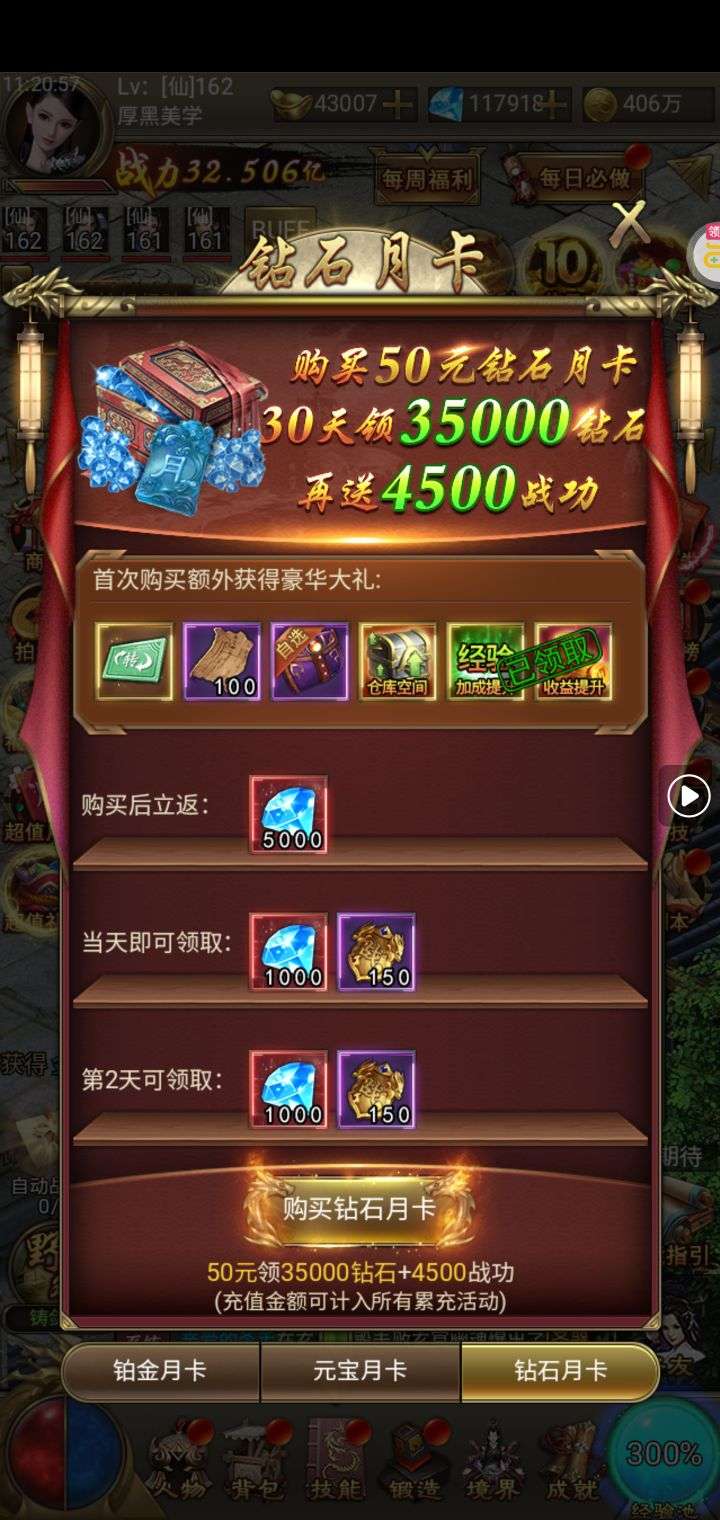 强化药剂*200、钻石招募币*20、金币*50W(每个账号限领一次)