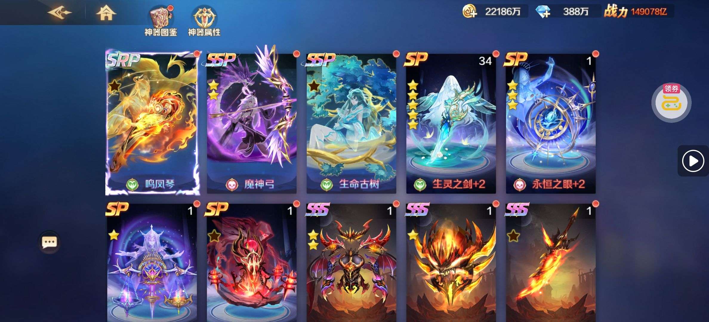基本魂师,暗器,魂灵,神器都有,仓库爆满