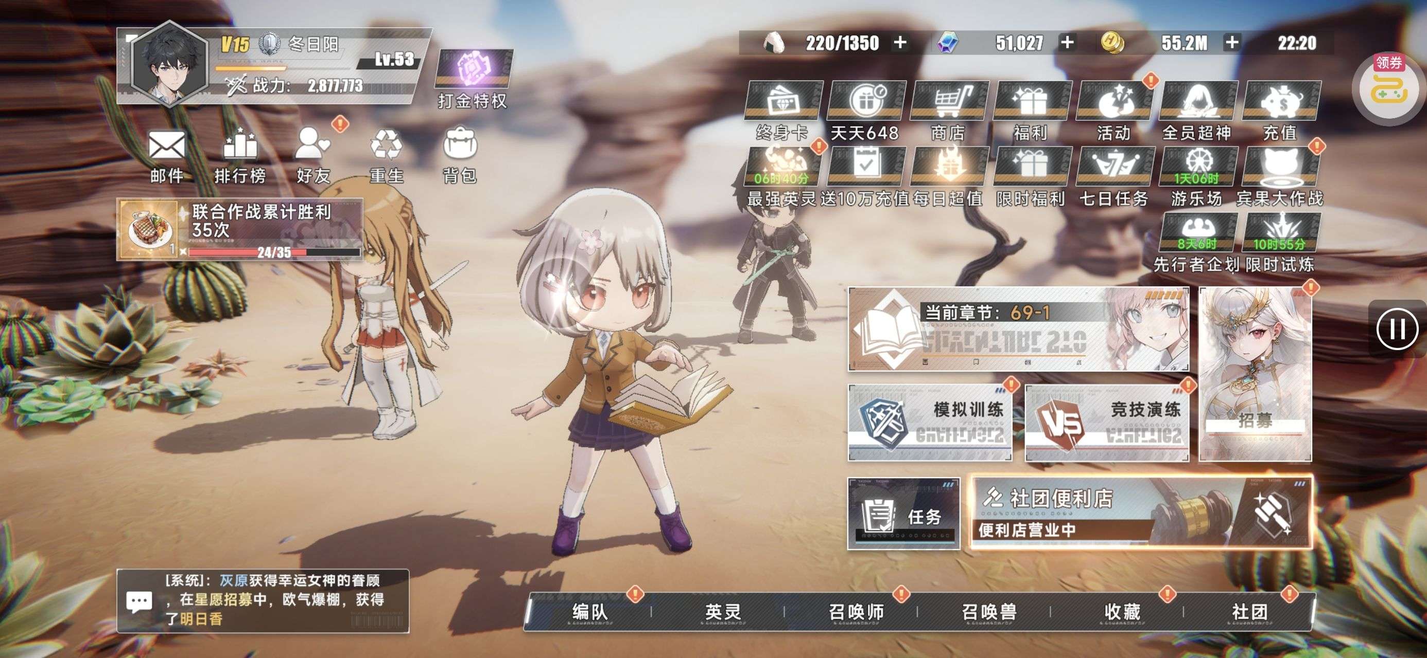 强化药剂*200、钻石招募币*20、金币*50W(每个账号限领一次)