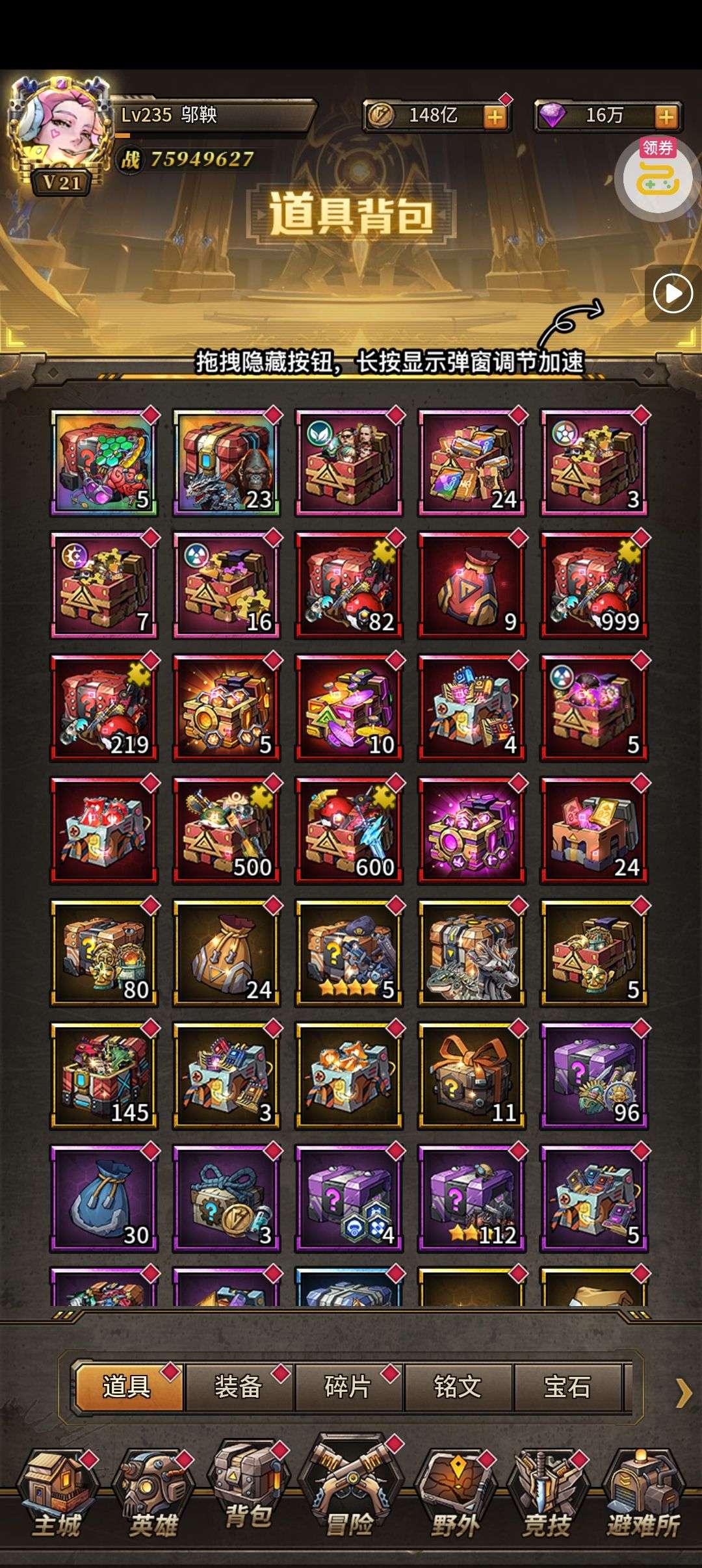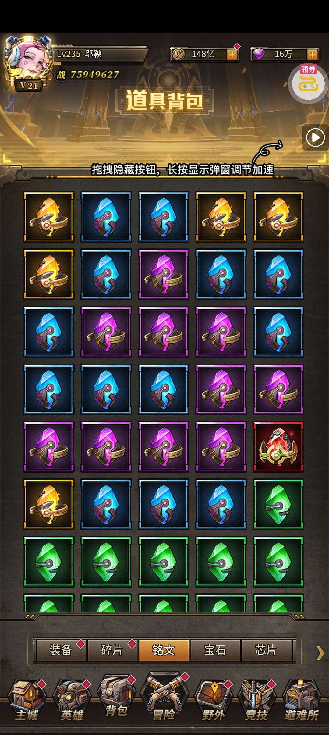 一堆圣晶石6小时*1、募魂令*10、暗淡原石*40(每个账号限领一次)