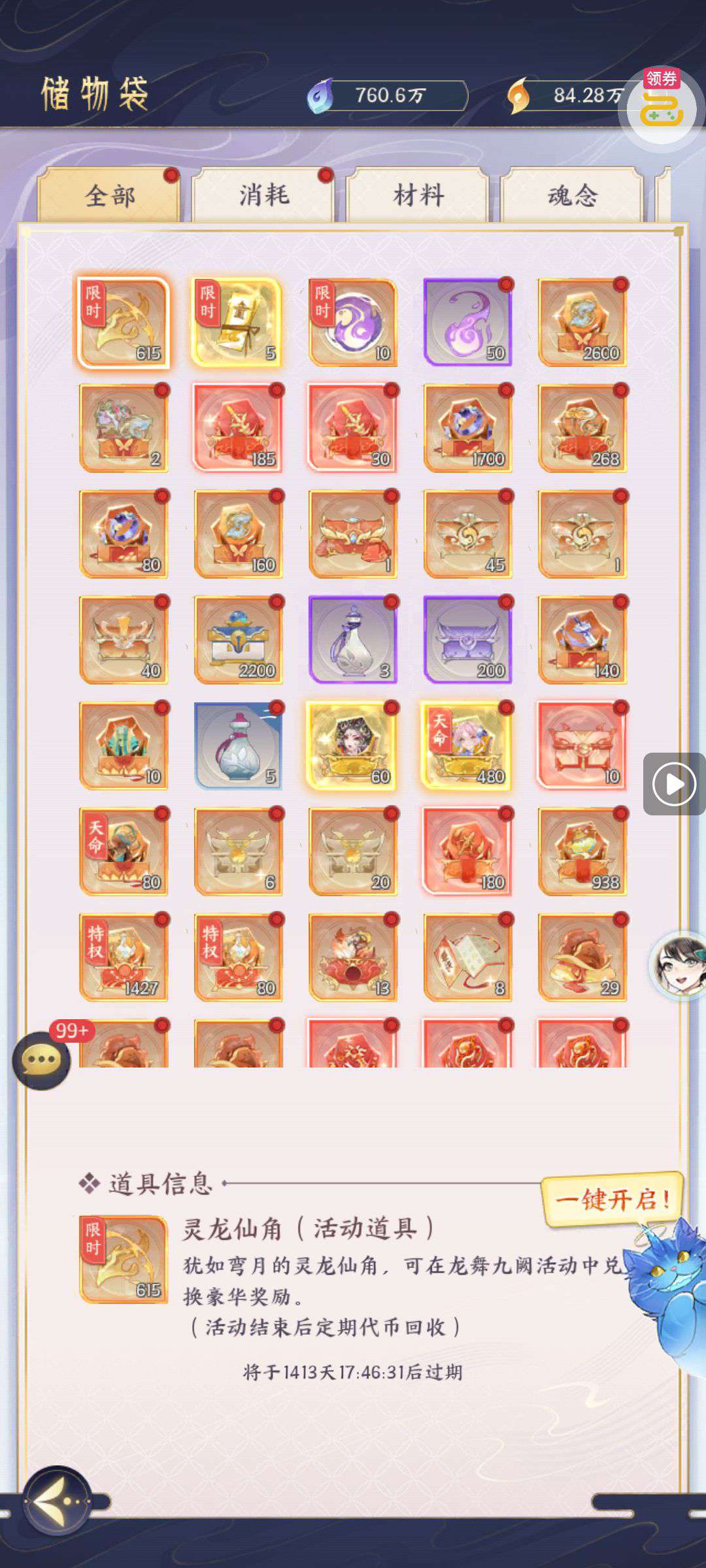 一堆圣晶石6小时*1、募魂令*10、暗淡原石*40(每个账号限领一次)