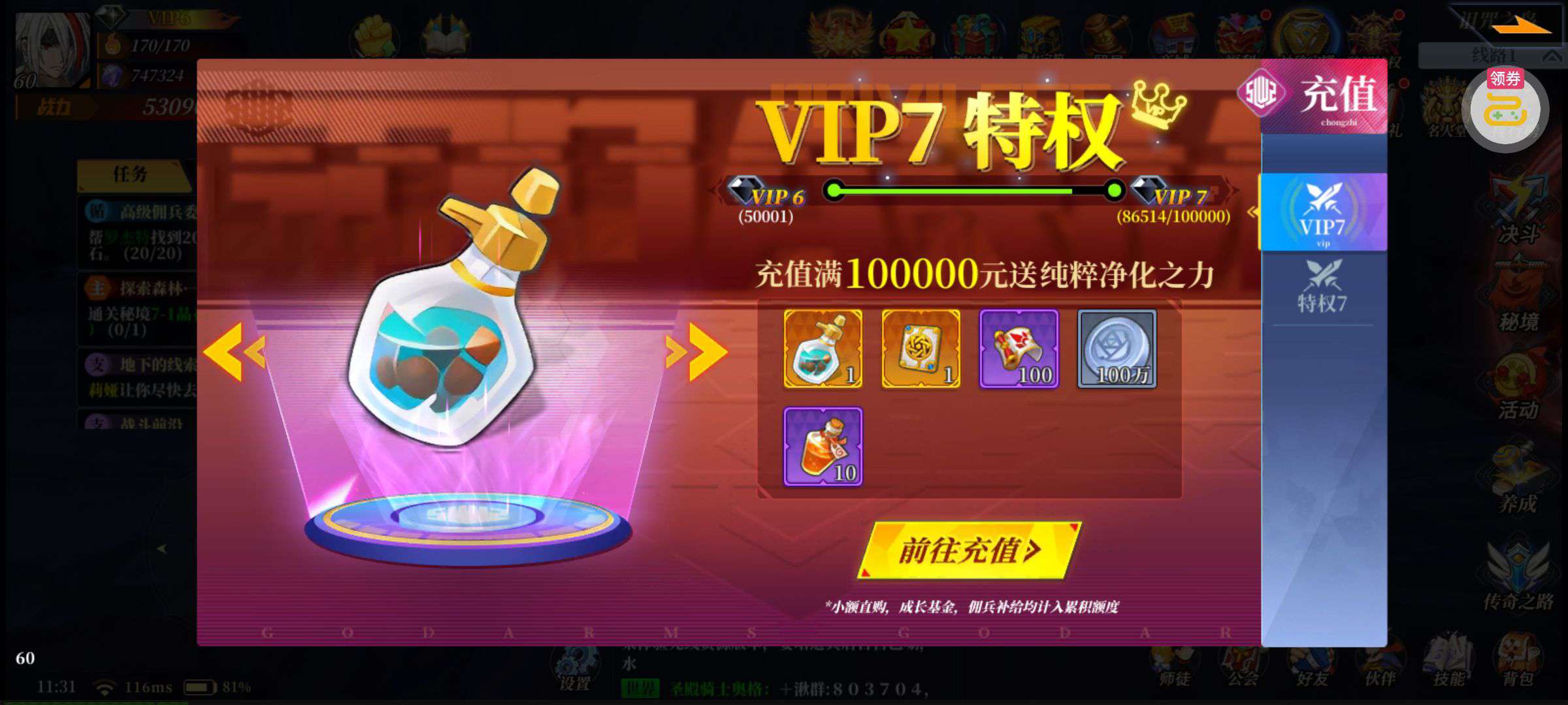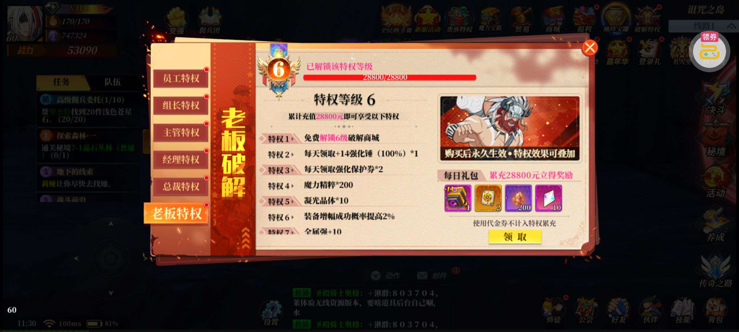 强化药剂*200、钻石招募币*20、金币*50W(每个账号限领一次)