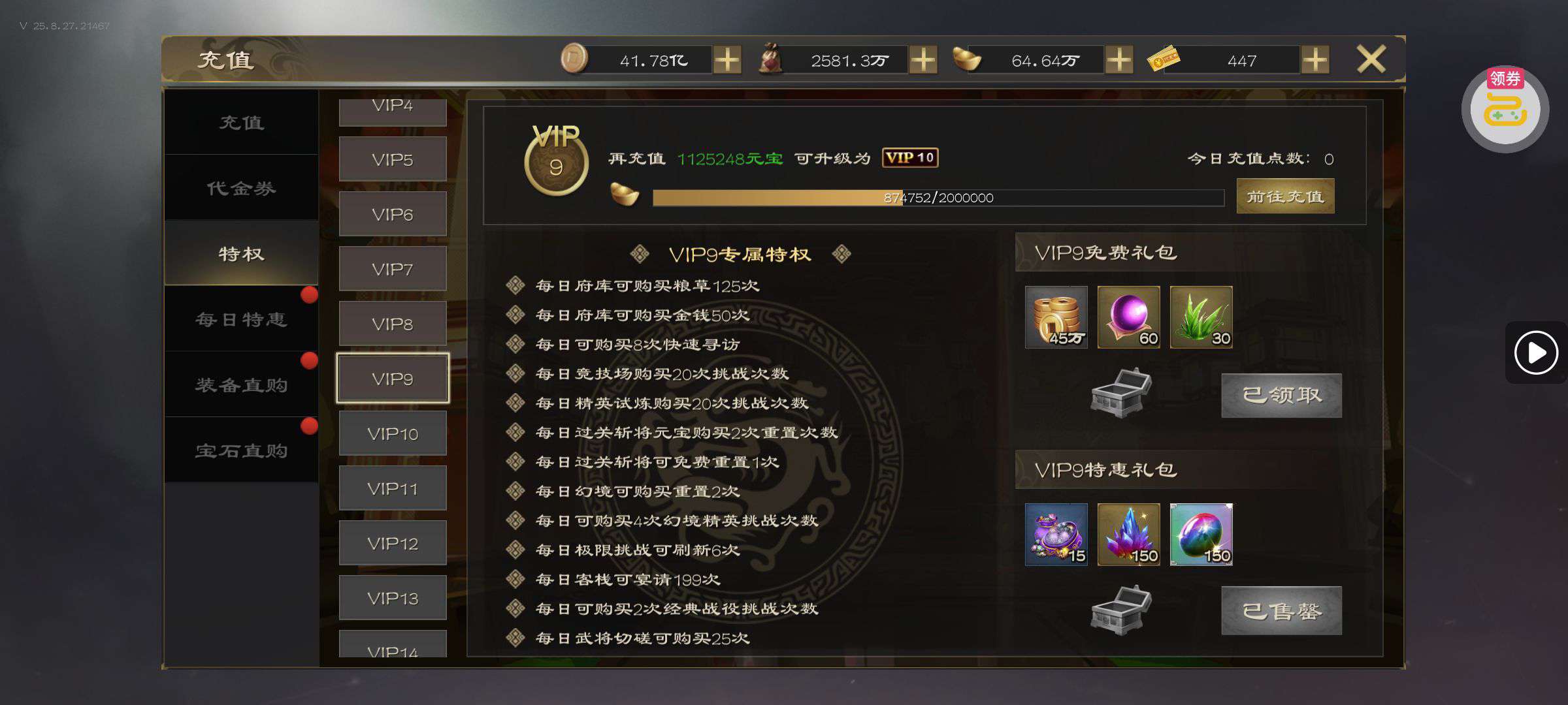 0.1折畅享打金特权
