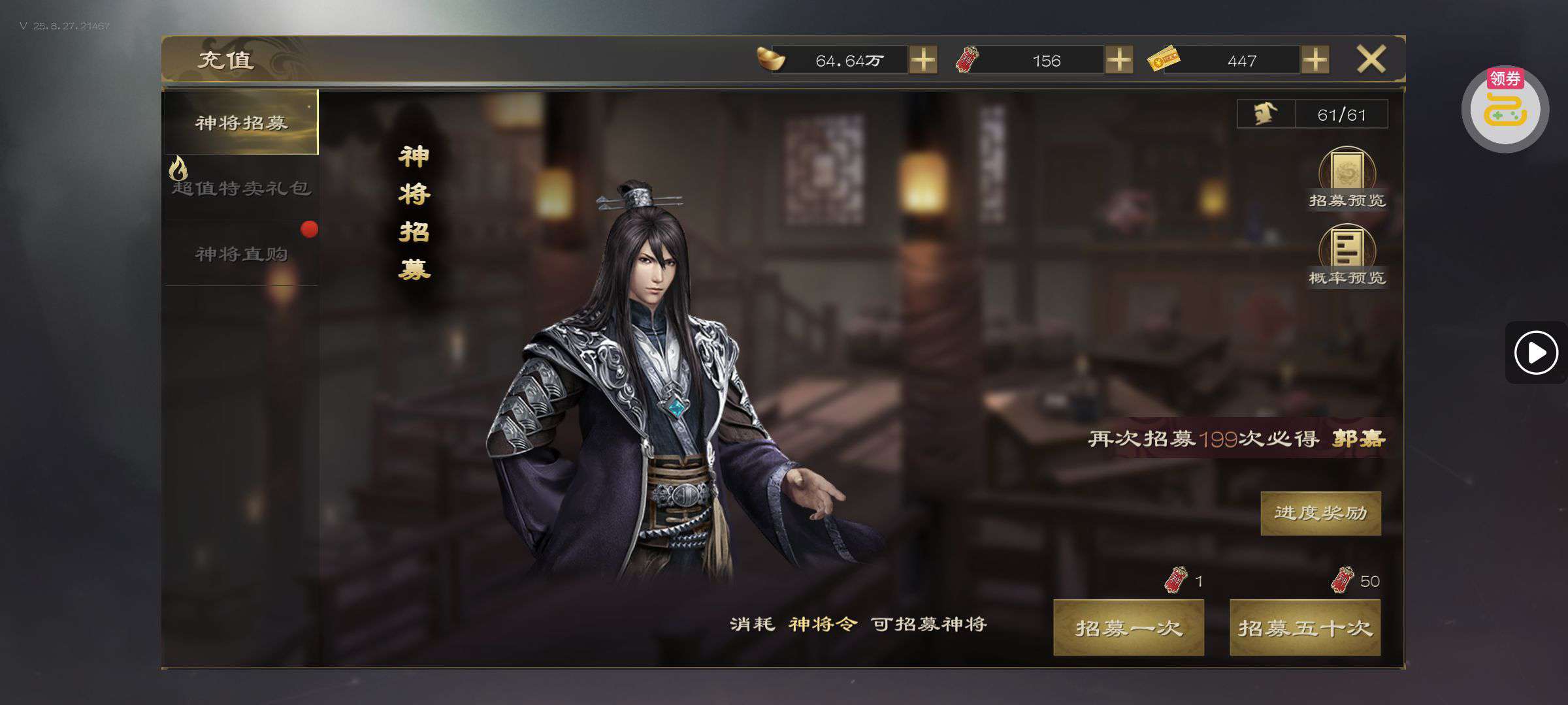 钻石*188,英灵祈愿券*10,金币*10000(每个账号限领一次)
