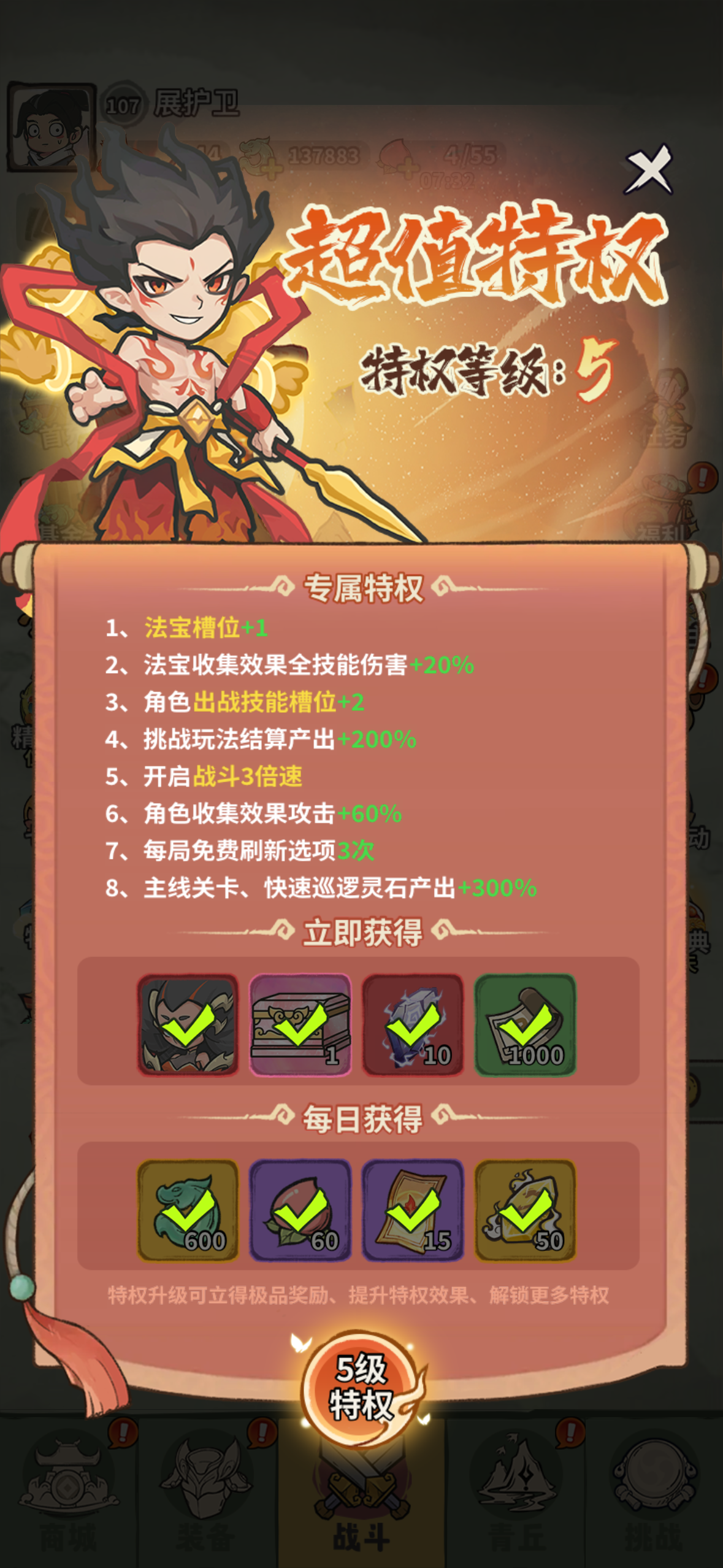 游戏里面该买的礼包都买了月卡我都买了 特权二 便宜出了
