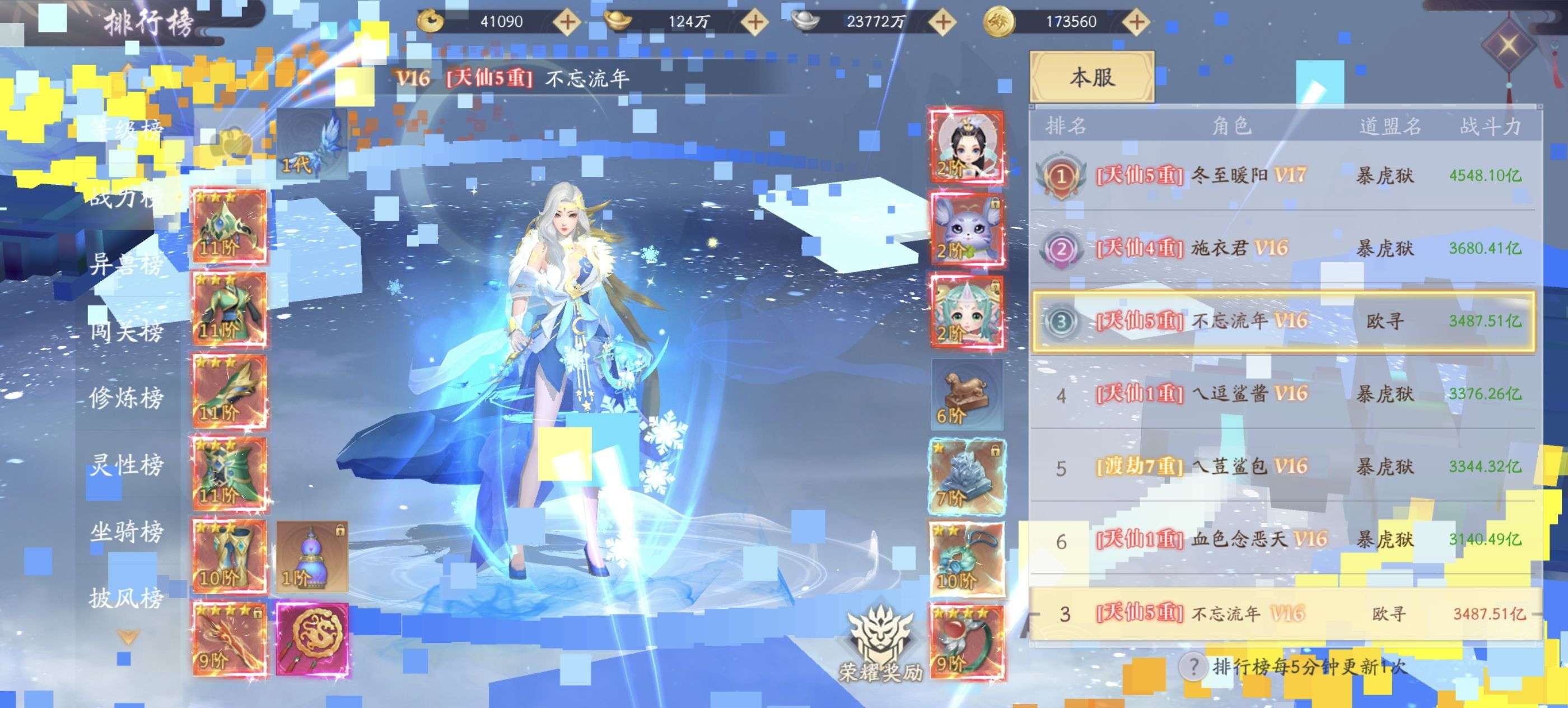 3400亿战力 区第三 等级420 区第二