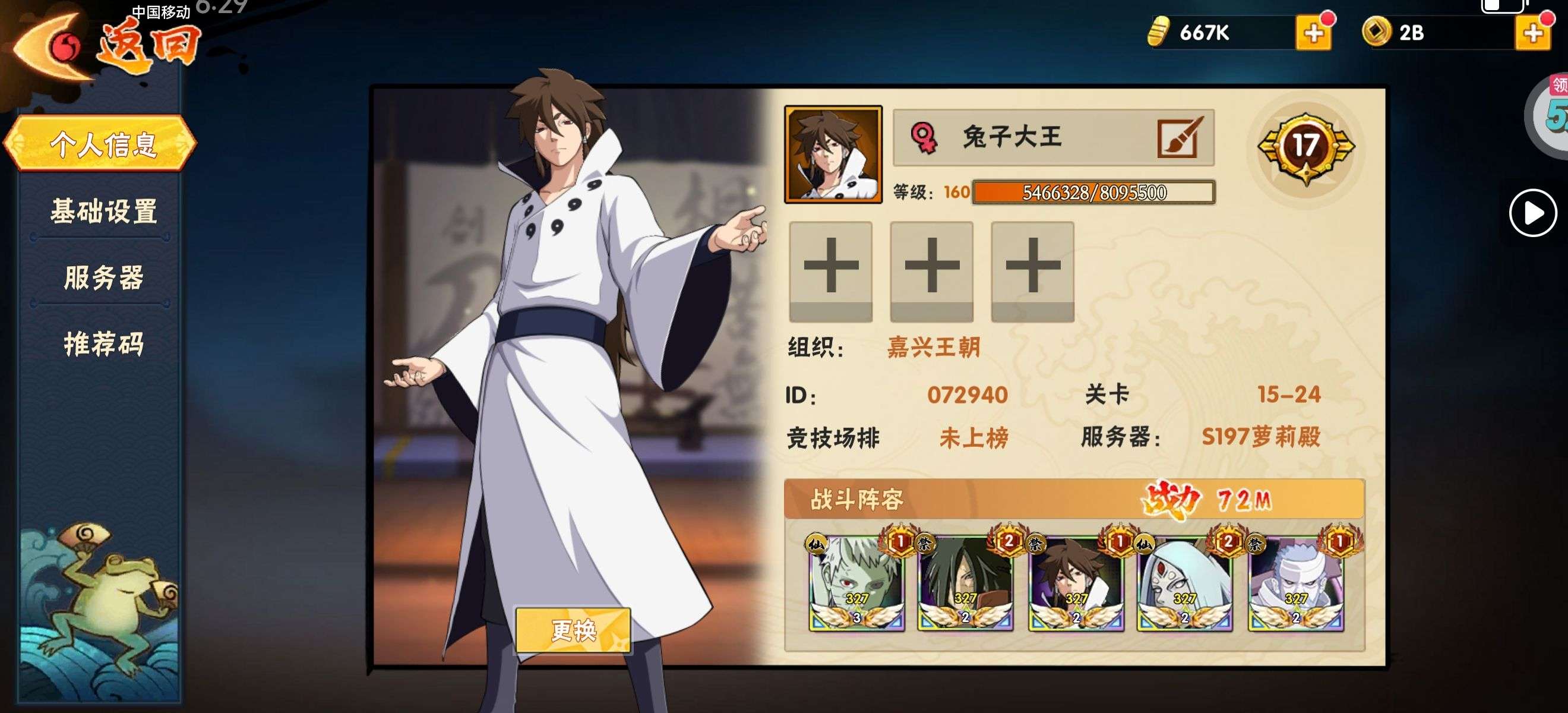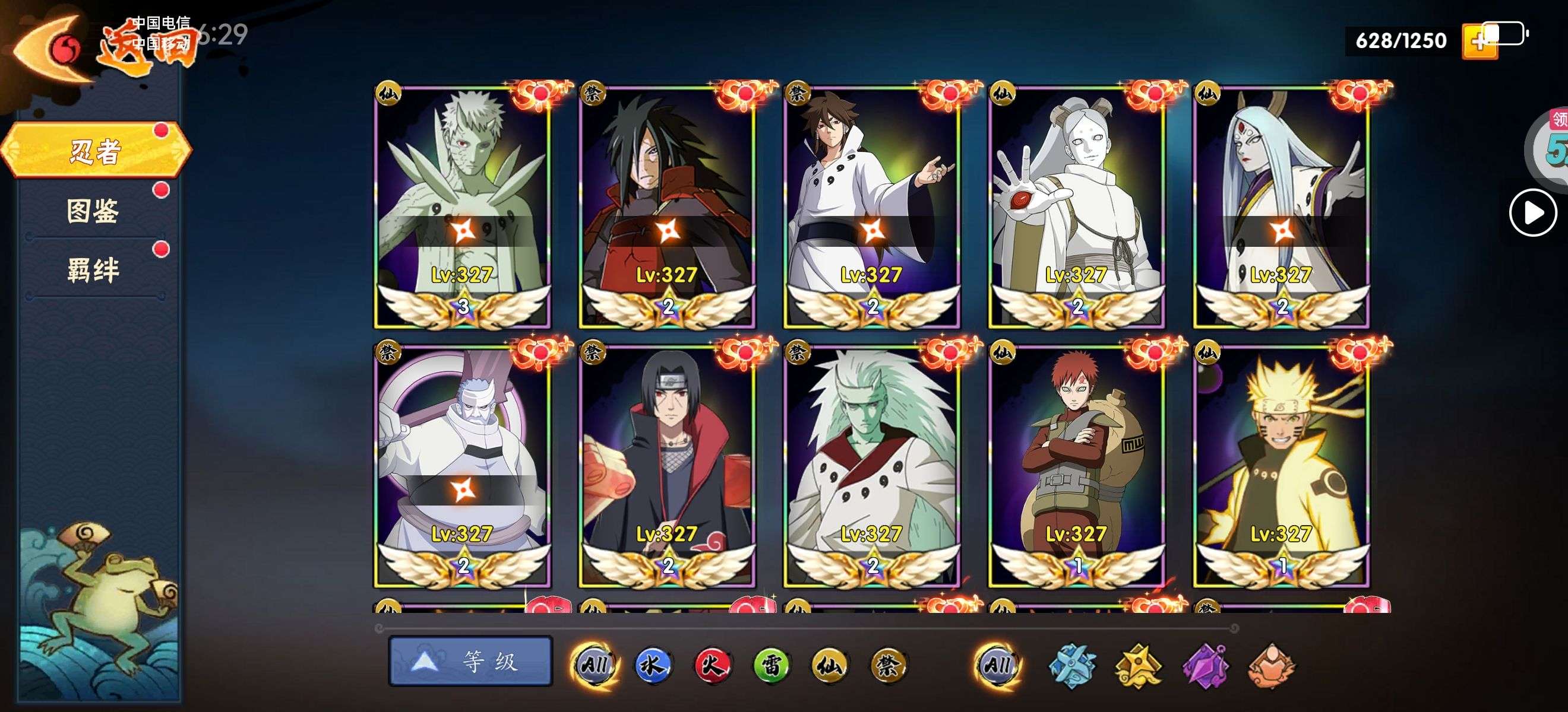 战力2.23亿+,禁术卷轴9.2千+,毕业阵容,养上阵的5个人物就行了。