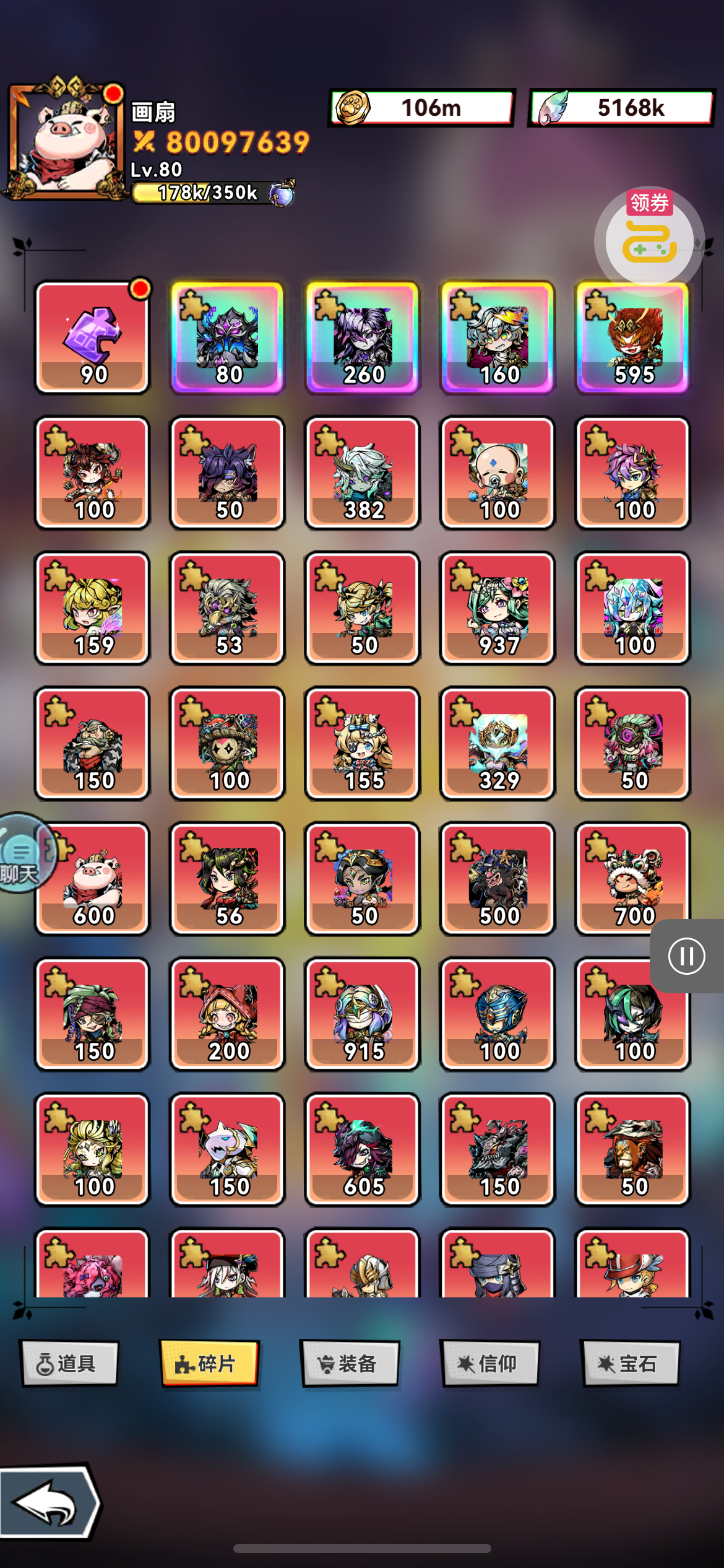 橙色五星孙悟空,橙色二星杨戬,还有大量万能碎片资源