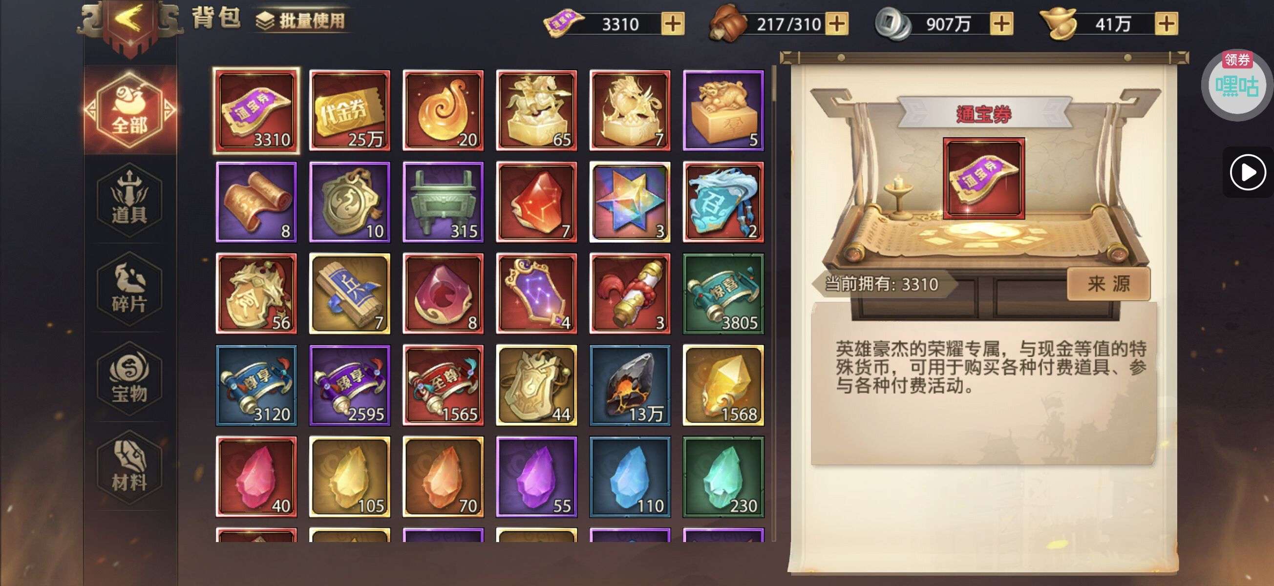 一堆圣晶石6小时*1、募魂令*10、暗淡原石*40(每个账号限领一次)