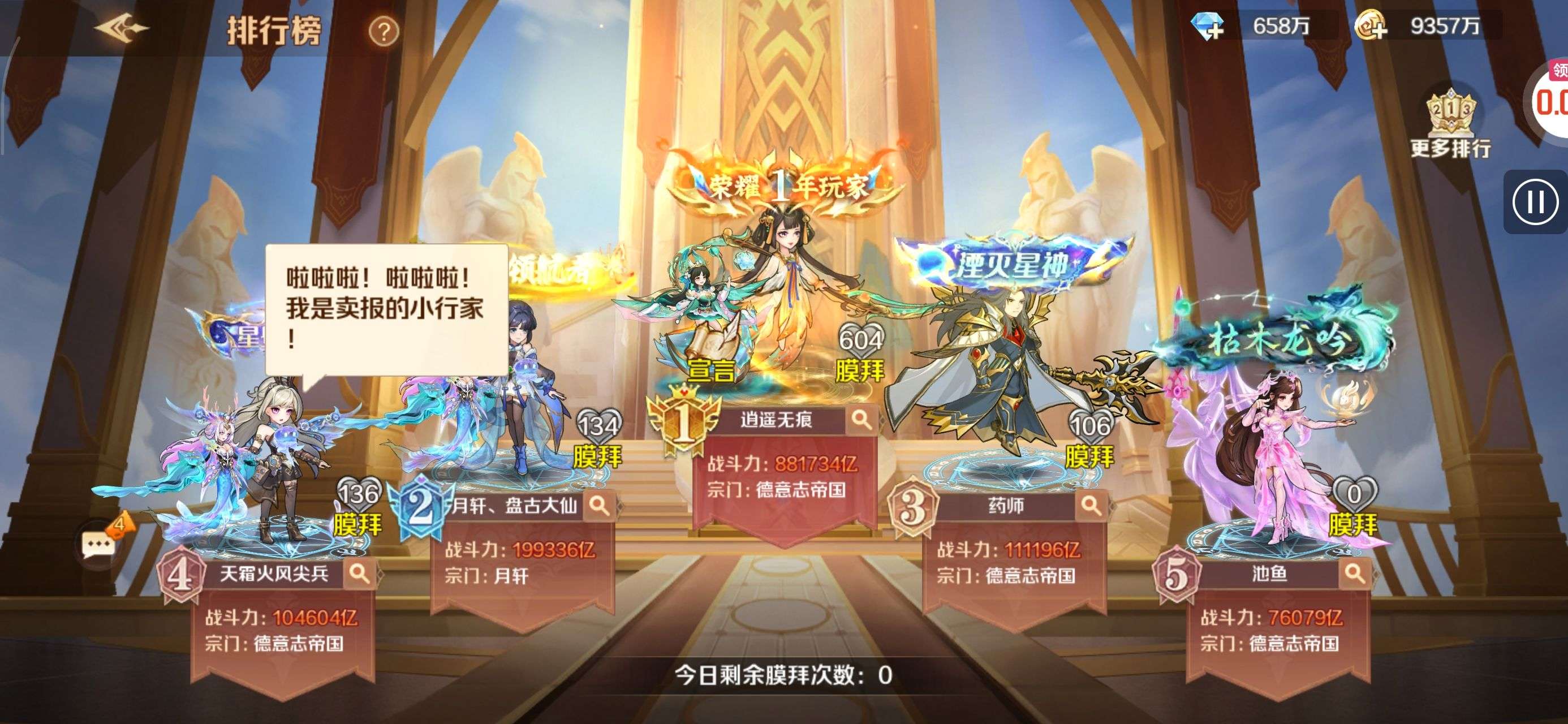 可以进行冠名的账号,装备非常齐全,新出的啥都氪了