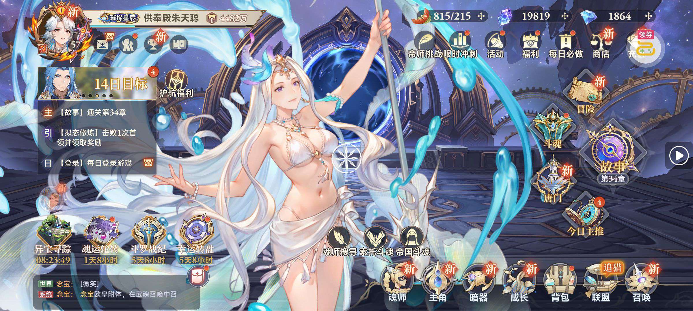 魂晶*888,魂师召唤券*10,武魂水晶*5(每个账号限领一次)