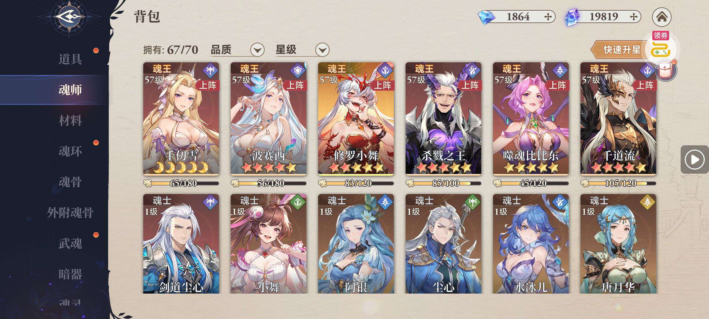 64级,各种洪荒角色齐全,魂环、魂骨等均是顶配